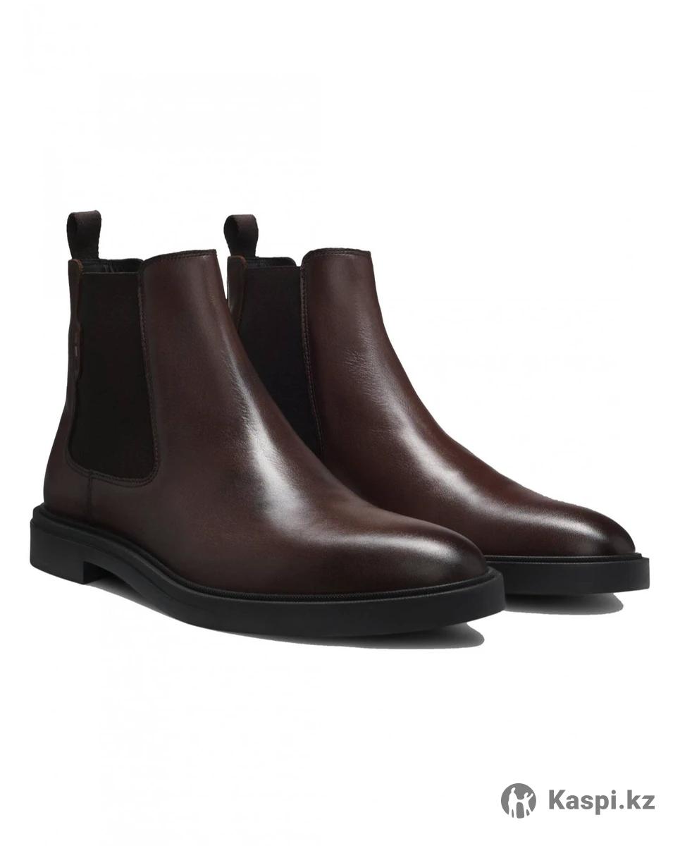 Оригинал, кожаные сапоги BOSS Calev Chelsea, цвет темно коричневый, размер 45/12us Новые, не подошел размер. цена 90000 тенге