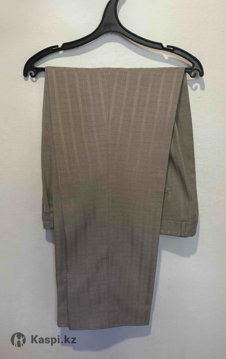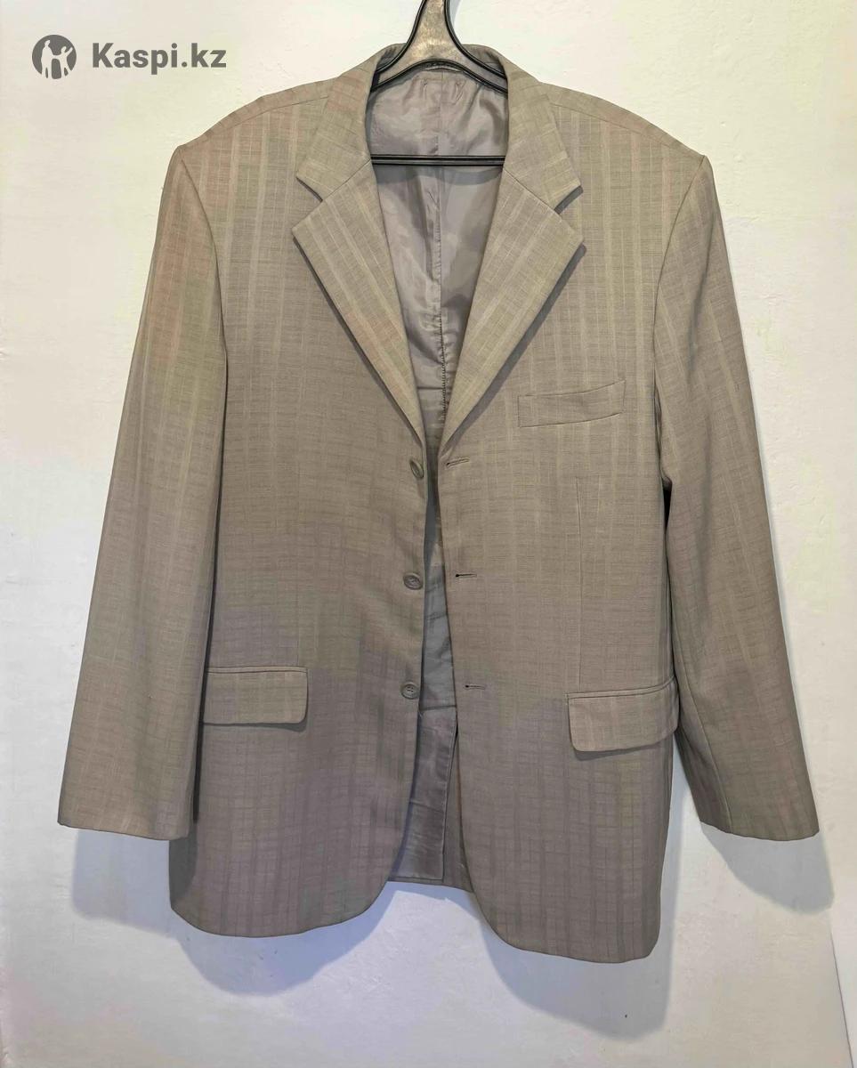 Бежевый костюм, двойка. Ткань приятная. В отличном состоянии. Длина брюк - 104 см По поясу Талии брюк - 102 см Длина пиджака - 82 см Длина рукава от плеча - 66 см Грудь по кругу- 116 см Отличный костюм с брюками! Двойка! Бу Продам за 5.000 тенге