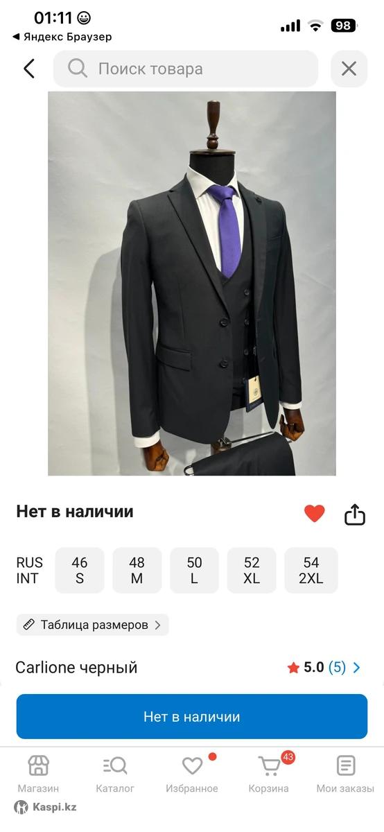 Продается черный костюм тройка, новый качество отличное, фирма Carlione, заказали не подошел размер. Покупали за 60000- продаем дешевле. Все отзывы о костюме выложили. Торг имеется.