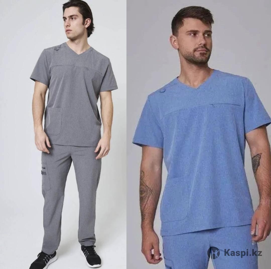 ОТПРАВЛЯЮ КазПочтой !!! Костюм медицинский мужской Бренд: Oxgear Материал: 92% Polyester, 8% Spandex Цвет: Голубой Серый Топ: XL (плечи 55см, бюст 136см, длина 80см) Штаны: XL (пояс 88см , бедра 116см, длина 102см)