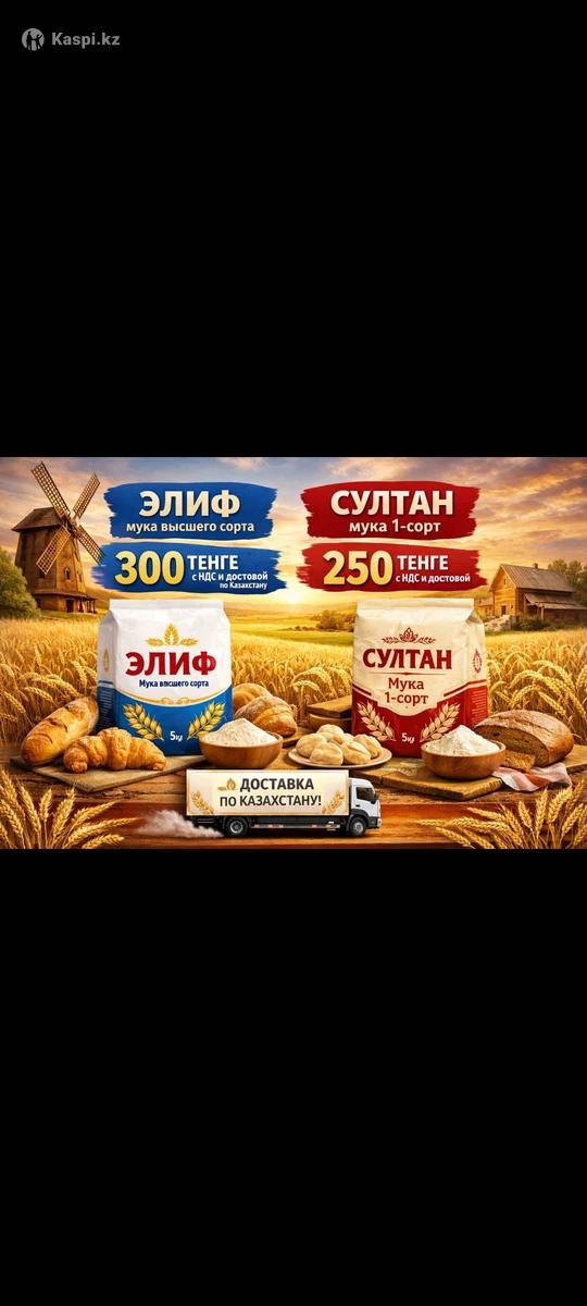 Здравствуйте! Меня зовут Нурлан. Предлагаю качественную муку с НДС и доставкой по Казахстану 🚚 📌 В наличии мука отличного качества: 🥖 Мука высшего сорта "ЭЛИФ" — белая, чистая, воздушная — отлично подходит для выпечки, хлеба, лепешек, самсы, баурсаков — тесто получается мягкое, пышное и вкусное 💰 Цена: 300 тг/кг с НДС и доставкой 🥯 Мука 1 сорта "СУЛТАН" — идеальна для ежедневной выпечки, хлеба и теста — хороший выход, приятный вкус, стабильное качество 💰 Цена: 250 тг/кг с НДС и доставкой --- ## ⭐ ## Почему выбирают нашу муку? ✅ Мука свежая, без запаха, без примесей ✅ Хорошо поднимается, дает отличный результат ✅ Выпечка получается вкусная и мягкая ✅ Отлично подходит для пекарен, столовых, кафе, кондитерских ✅ Работаем официально: договор, накладная, ЭСФ ✅ Быстрая отгрузка и доставка --- 📌 Работаем в основном с крупными объемами. Если у вас пекарня, цех или производство — будем рады долгосрочному сотрудничеству 🤝 Напишите ваш город и нужный объем — дам точную цену и срок доставки. С уважением, Нурлан
