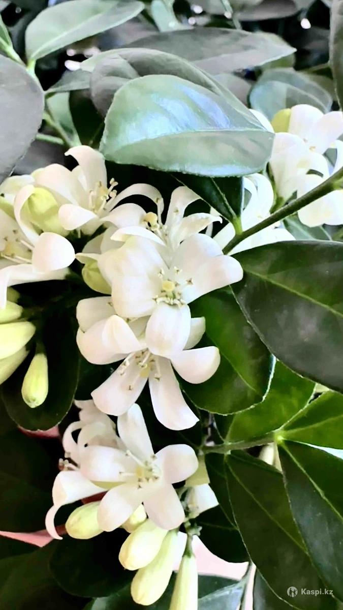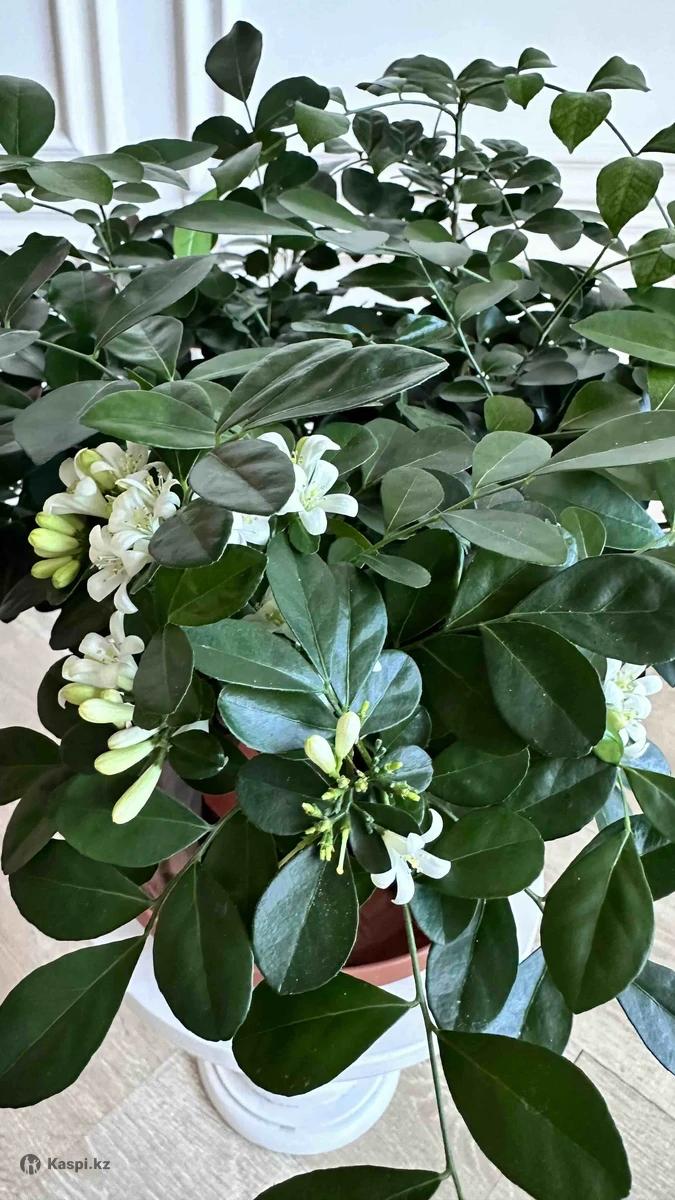 Мурайя — растение счастья и здоровья! Компактное, вечнозеленое деревце с ароматными цветами и полезными ягодами. Цветет и плодоносит круглый год! Освежает воздух Приятно пахнет жасмином Ягоды съедобные и целебные Неприхотлива, подходит даже новичкам. В немецкий грунт и минералы добавлено удобрение пролонгированного действия (8 мес) осмокот. Цена от 850 до 5000 тенге