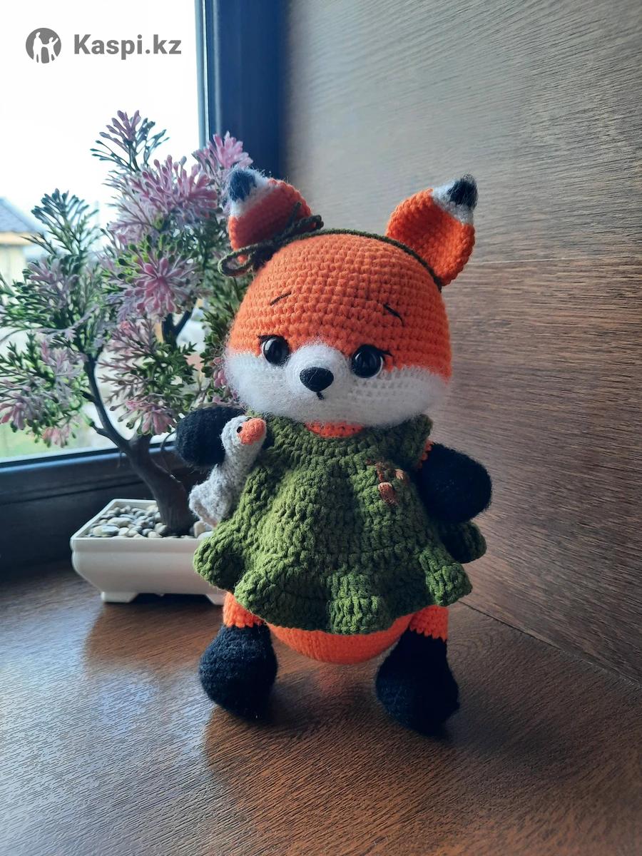 Мягкие , вязанные игрушки, выполнены из качественных материалов. Глазки и носик на безопасном креплении. Одежка съемная.