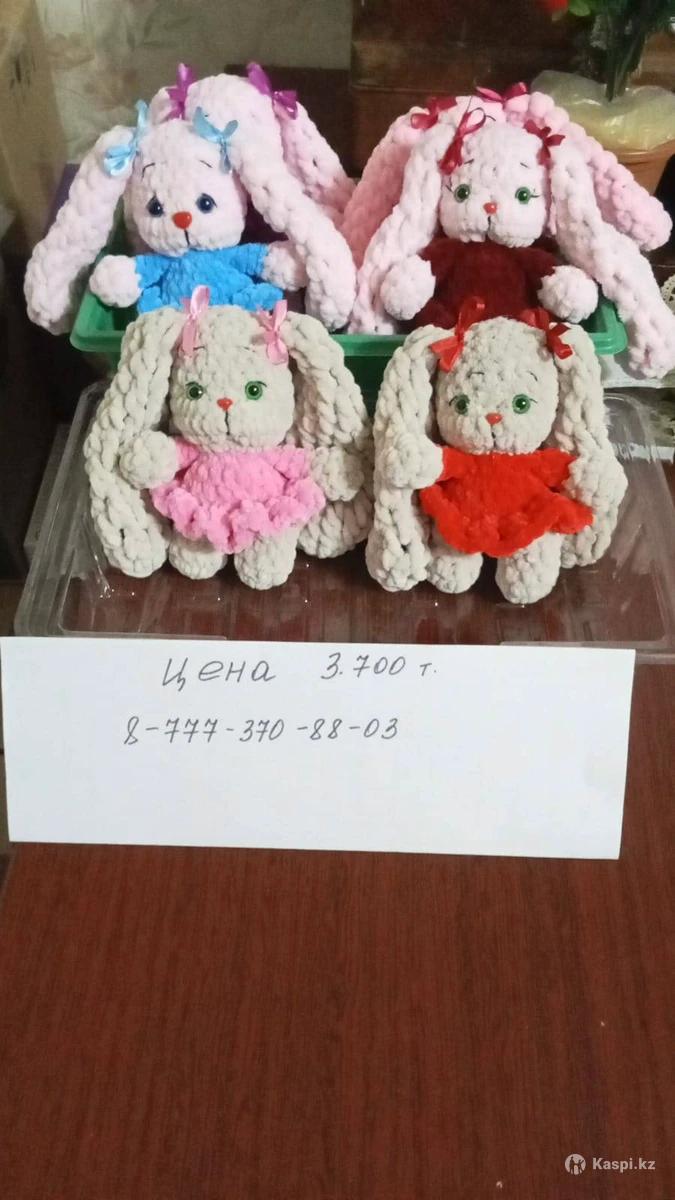 Мягкие игрушки ручная работа, выполнены из гипоаллергенной пряжи, цены от 3700 тг, посмотреть весь ассортимент и выбрать можно в районе вокзала