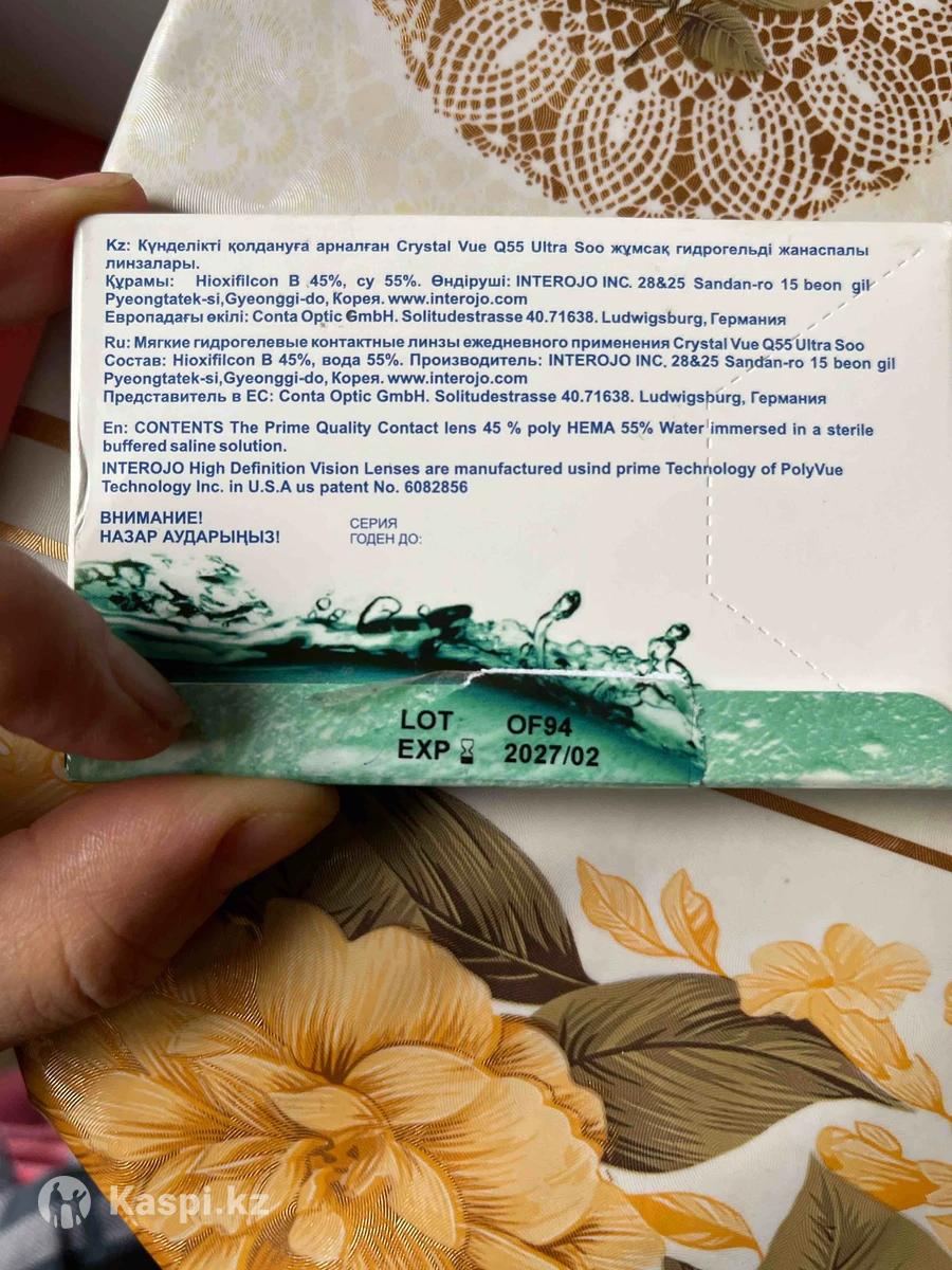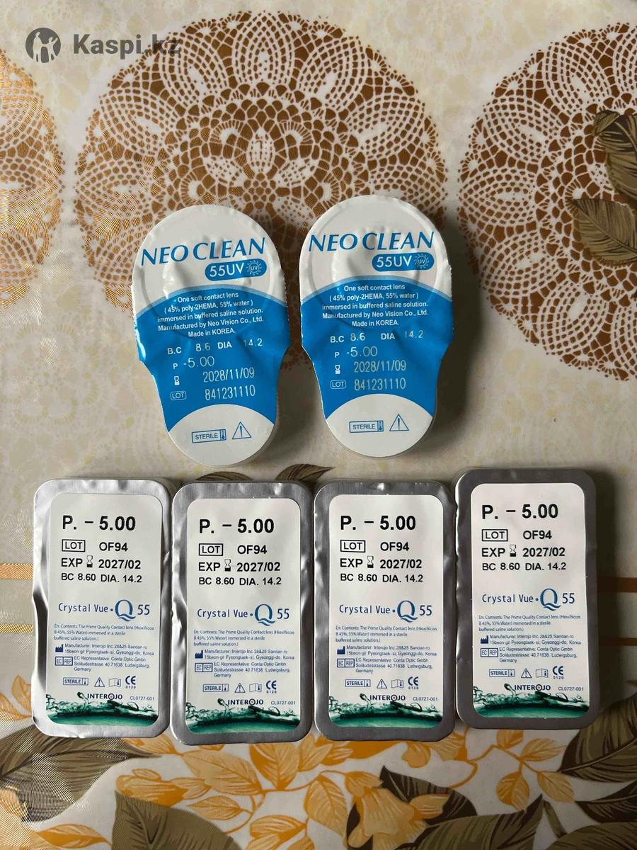 Продам контактные линзы новые в связи с ненадобностью, лежат без дела. Crystal Vue Q55 Ultra Soo -5.00 кривизна 8.6 Влагосодержание 55%, срок ношения 1 месяц, в наличии 4 шт. Срок годности до 2027/02 Neo Clean 55UV -4.75 кривизна 8.6 В наличии 1 упаковка-6 штук, -5.00 кривизна 8.6 - 2 шт. Срок годности до 2029/08/06 Производство Корея. Цена за 1 шт-1500 тг Самовывоз 11 мкрн.