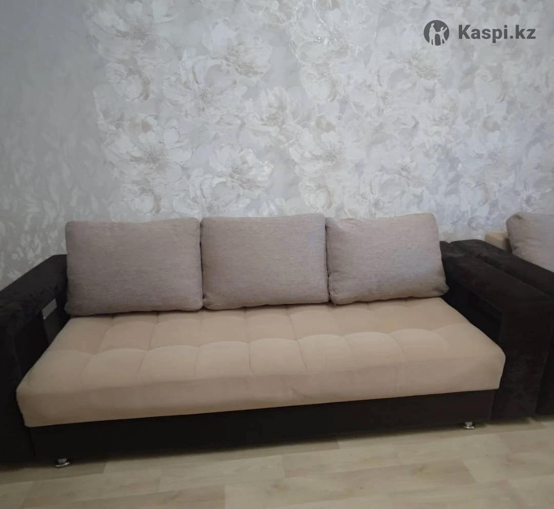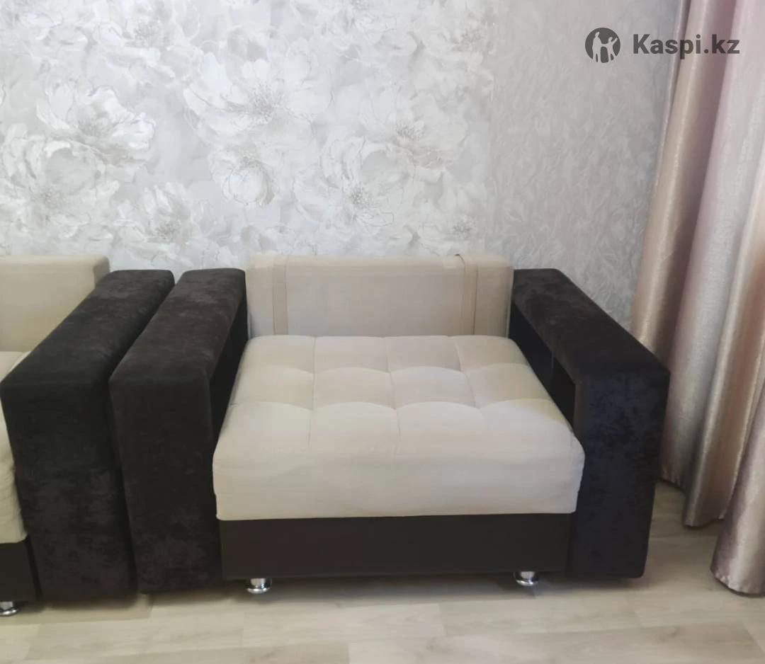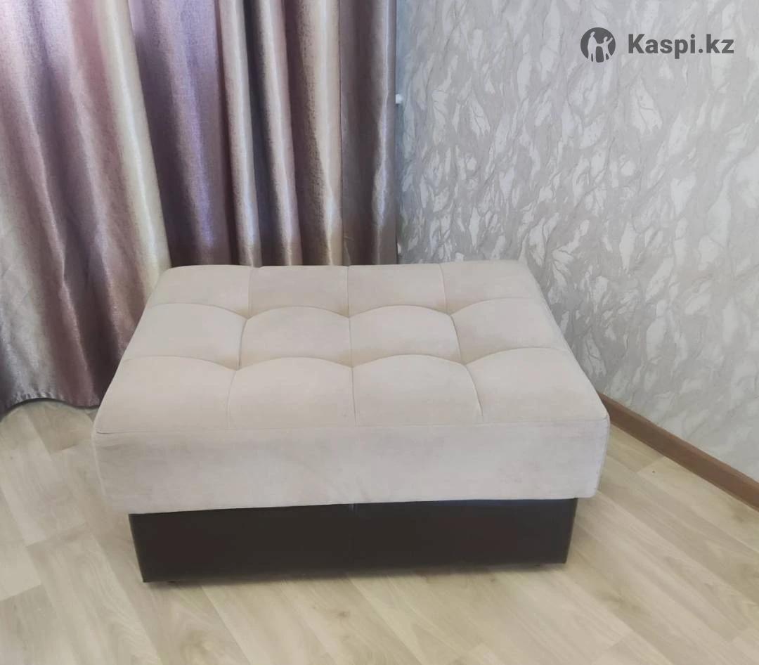 мягкий уголок: диван длина 2.40, ширина в разложенном виде 1.50. кресло ширина 1.30, раскладывается, можно использовать дополнительное спальное место, на диване 3 подушки, на кресле 1 большая подушка, пуфик как журнальный столик