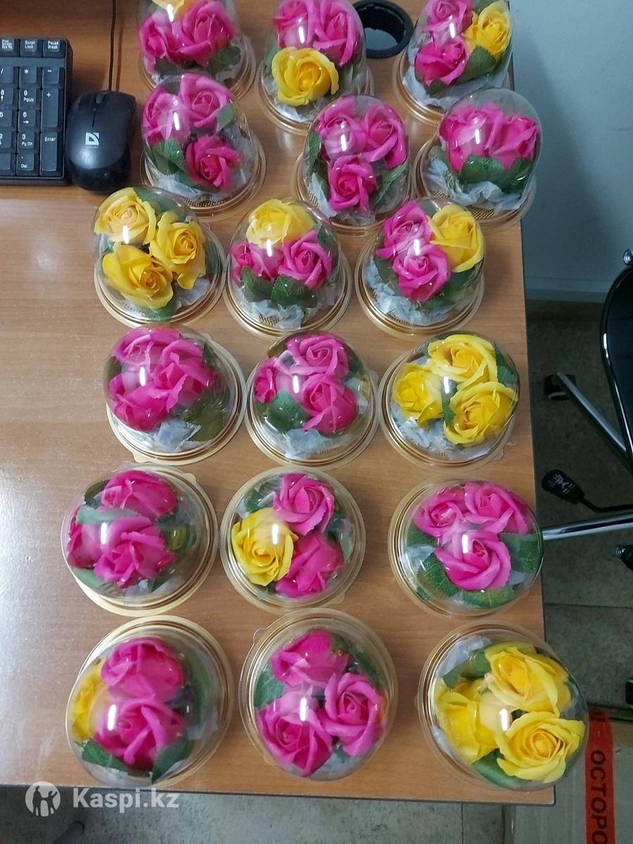 Розы из мыла в куполе по 3 шт. Размер купола 9х9 С листьями и бумажной подложкой. 18 куполов осталось. Если всё заберёте, по 1600 продам.