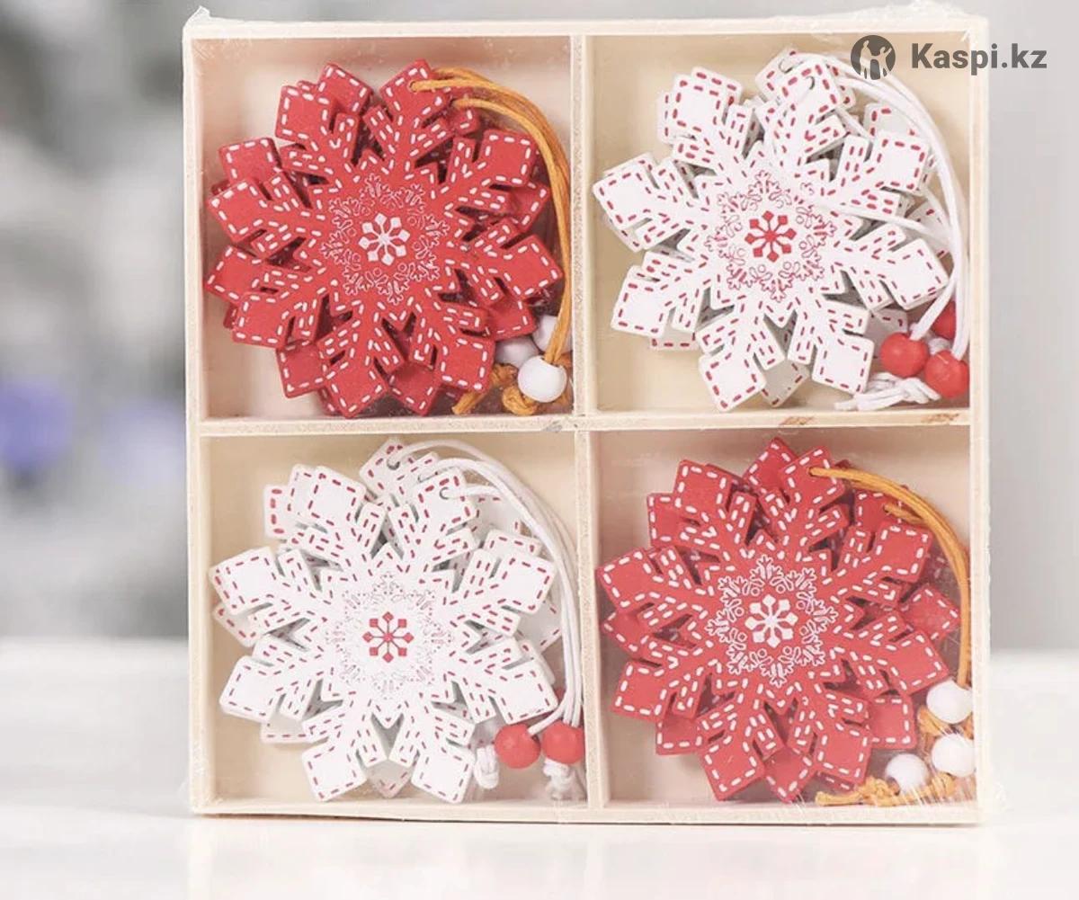 Прекрасное украшение для елки, а так же для домашнего интерьера в преддверии праздника. Елочные игрушки изготовлены из натурального дерева поэтому являются экологическими, они полностью безопасны для детей и домашних животных т.к. не бьются. Характеристики: Тема - новогодние украшения Количество - 12 Цвет - красный, белый Материал - дерево. 1 упаковка