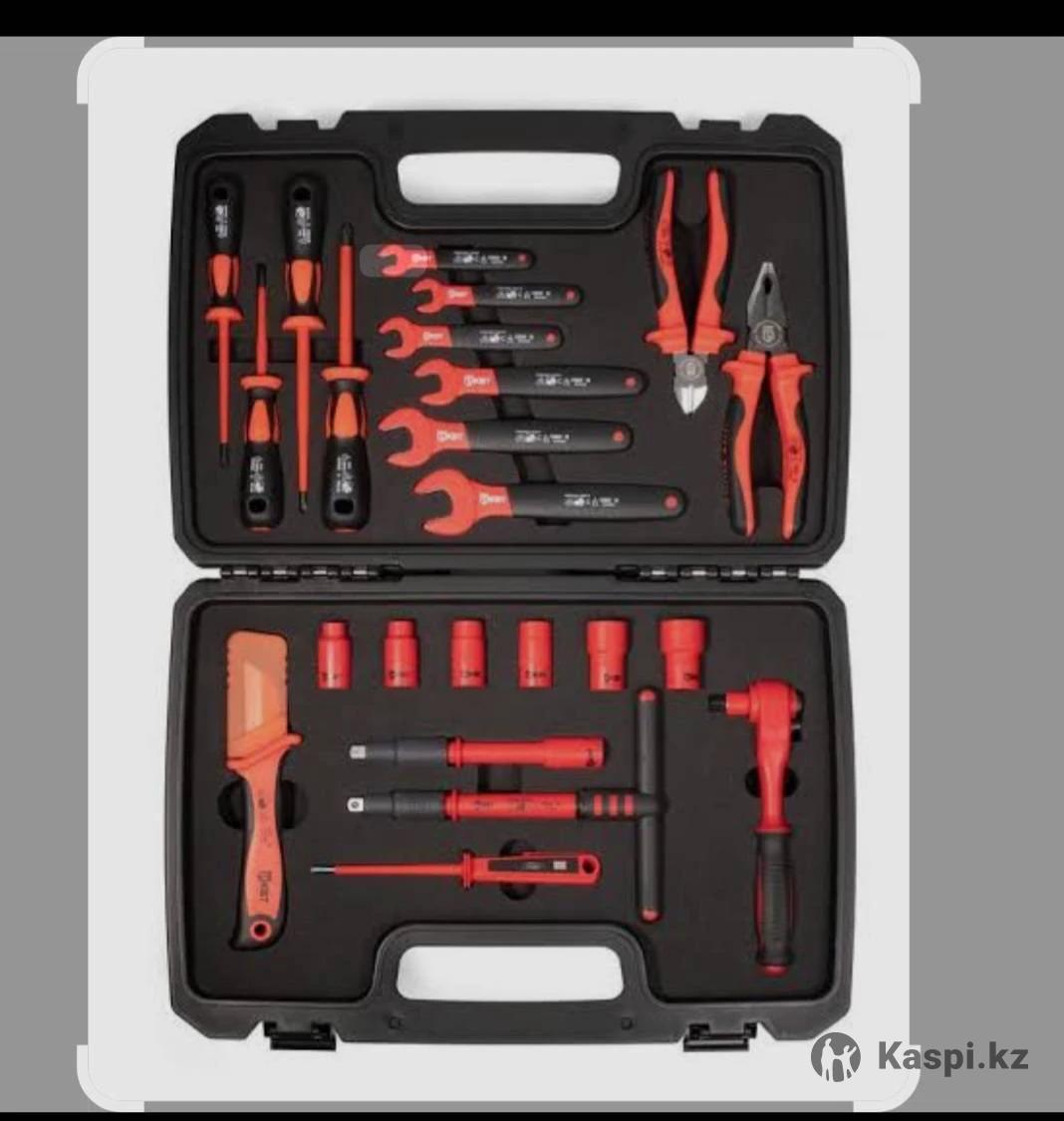 Это набор диэлектрического инструмента КВТ НИИ-11. Предназначен для электромонтажных работ под напряжением до 1000 В. Состоит из 23 предметов. В комплект входят диэлектрические отвертки, плоскогубцы, ключи и другие инструменты. Поставляется в прочном пластиковом кейсе для удобства хранения и транспортировки. Полная изоляция гарантирует безопасность при работе.