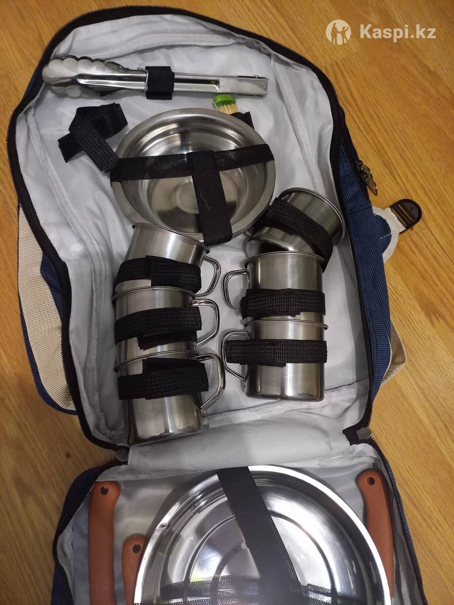 Продаю набор для кемпинга, пикника, горный набор. В наборе: - сумка-рюкзак; - 6 металлических тарелок; - 6 металлических кружек; - 6 металлических мисок/салатниц; - 6 ножей; - 6 вилок; - 6 ложек; - кусачка; - скатерть. Все новое, не использовано ни разу. Отлично подходит для отдыха на природе, вылазок на горы, на охоту, на рыбалку. Можно и в качестве подарка для мужчин. На каспи магазине 20000 тг.