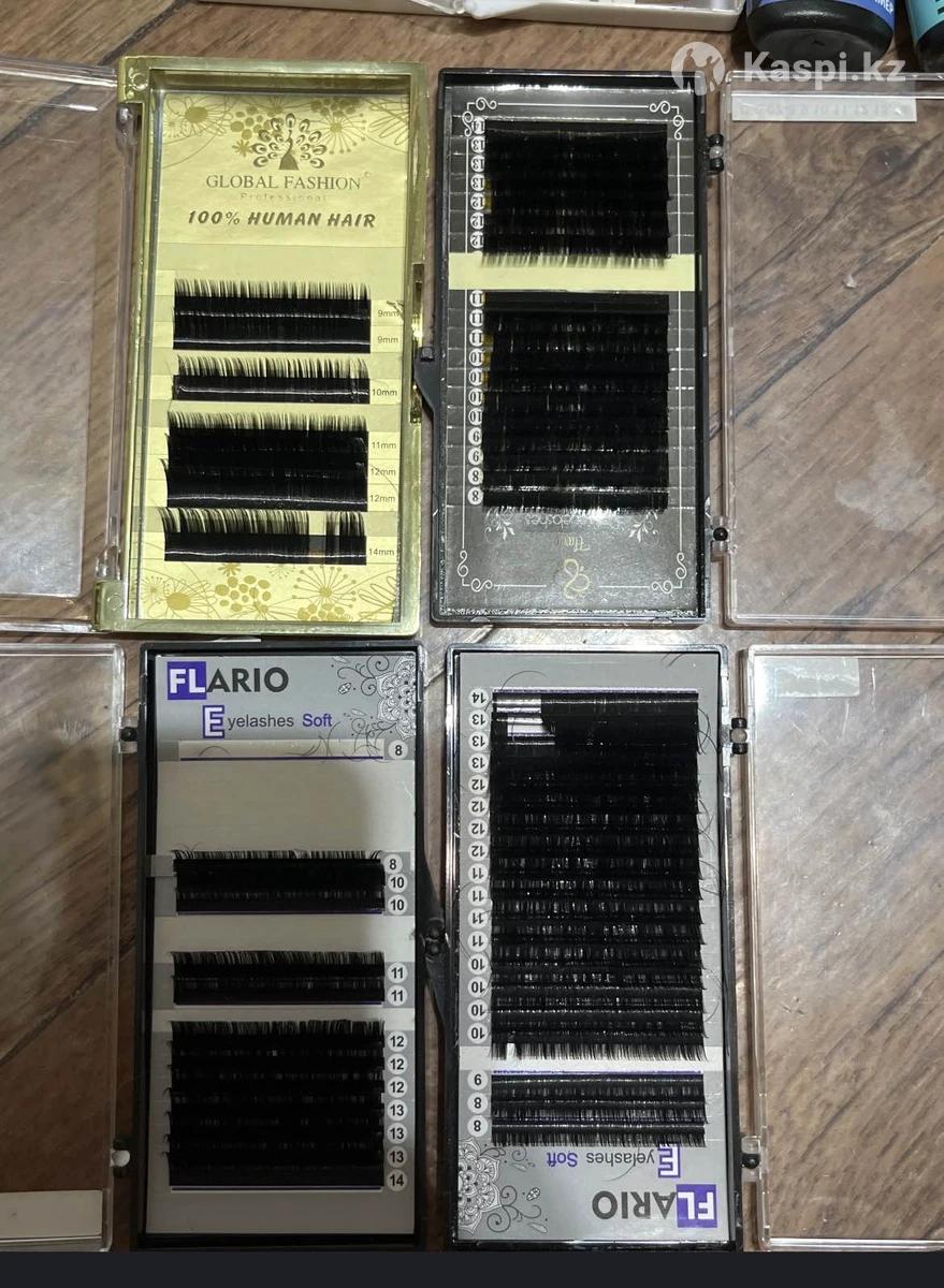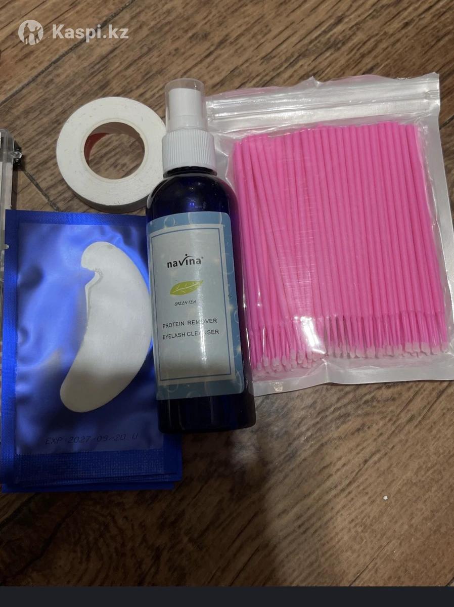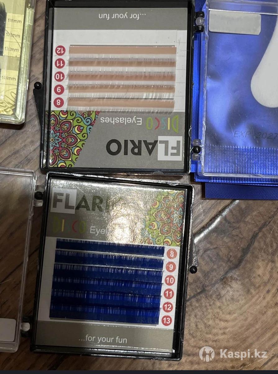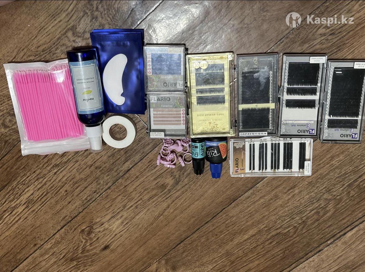 все новое, продаю из-за того что бросаю это дело. В наборе праймер,клей Обезжириватель, скотч, Патчи , колечки для клея. Ресницы белые, черные, синие.