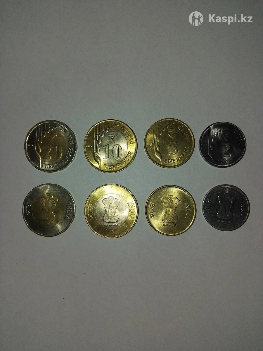 Набор из четырех регулярных монет республики Индия, номиналом 20, 10, 5 и 1 рупии, как на фотографиях.
