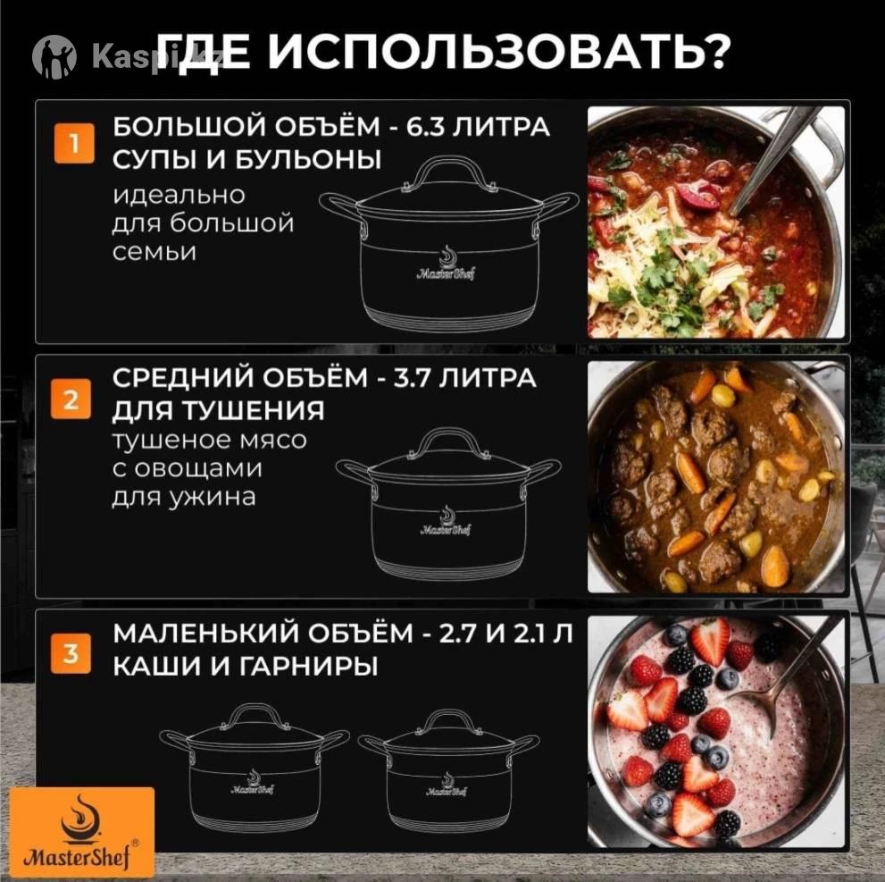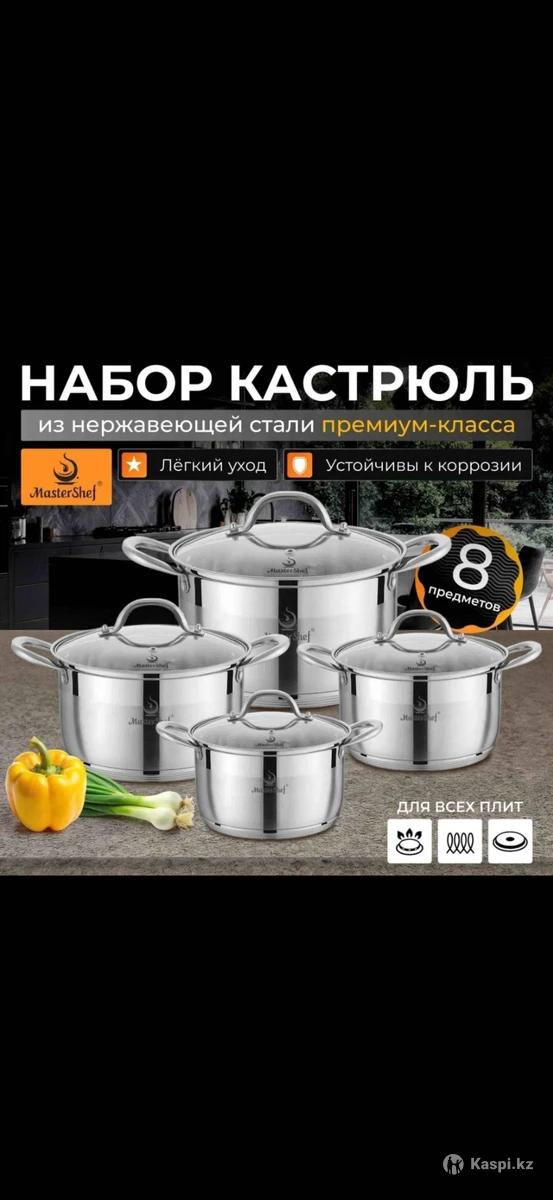Профессиональный набор кастрюль MasterShef сочетает в себе премиальное качество, стильный дизайн и удобство использования. Кастрюли изготовлены из прочной нержавеющей стали, обеспечивающей долговечность, равномерное распределение тепла и устойчивость к коррозии. Подходит для всех типов плит, включая индукционные. Комплектация (8 предметов): Кастрюля 16×10.5 см – объем 2.1 л + стеклянная крышка Кастрюля 18×11.5 см – объем 2.7 л + стеклянная крышка Кастрюля 20×12.5 см – объем 3.7 л + стеклянная крышка Кастрюля 24×14.5 см – объем 6.3 л + стеклянная крышка Преимущества: Высококачественная нержавеющая сталь – прочность, долговечность, устойчивость к ржавчине Подходит для всех типов плит, включая индукцию Прозрачные стеклянные крышки с пароотводом – удобство контроля за приготовлением Эргономичные ручки – комфорт в использовании Равномерное распределение тепла – эффективное приготовление блюд Идеальный набор для повседневного использования и приготовления разнообразных блюд!