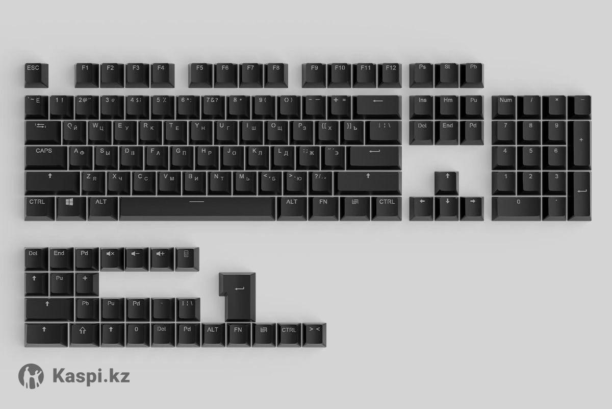 Набор черных кейкапов для механических клавиатур с английской и русской раскладкой