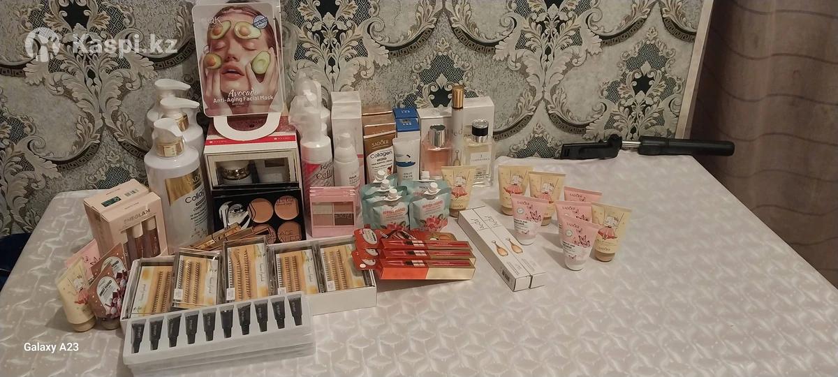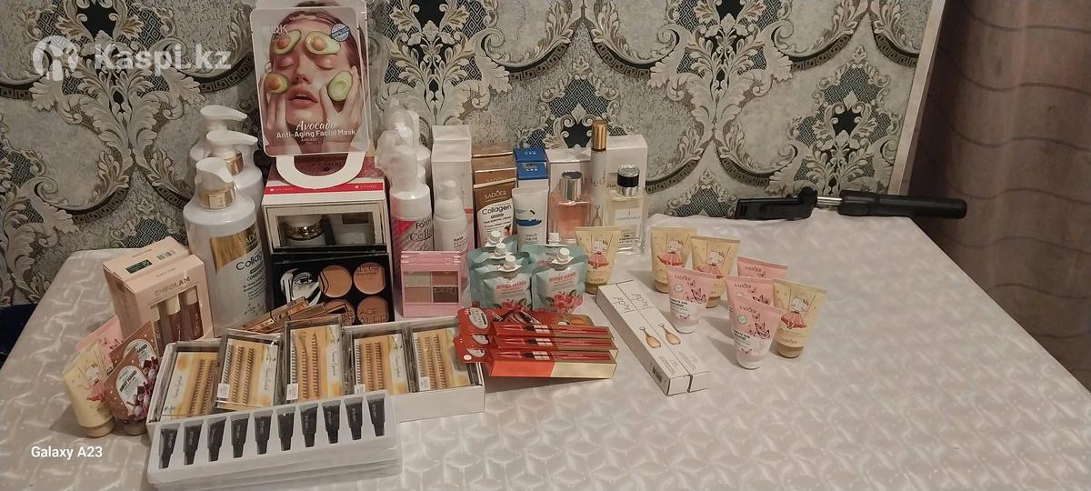 Кологен шампунь 1шт Кологен кондиционер 2шт Жидкий тень 3шт Тень 3шт Тушь 3шт Маска для лица 10шт Подарочный набор 2/1 3шт Кологеновый пенка 3шт Спрей депиляции 3шт Крем депиляции 3шт Крем для лица 3шт Духи 65мм 4шт Духи 35мм 3шт Кірпік 9мм-9шт Клей кірпікке 5 пачка Мини Крем для рук 17шт Подводка 3шт Майкап контроль 3шт Барлығын өз бағасына берем.