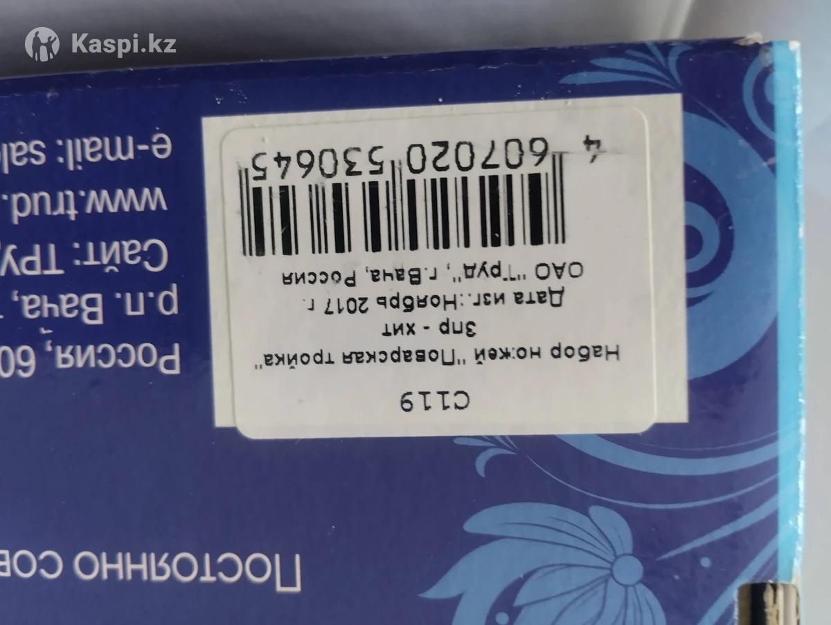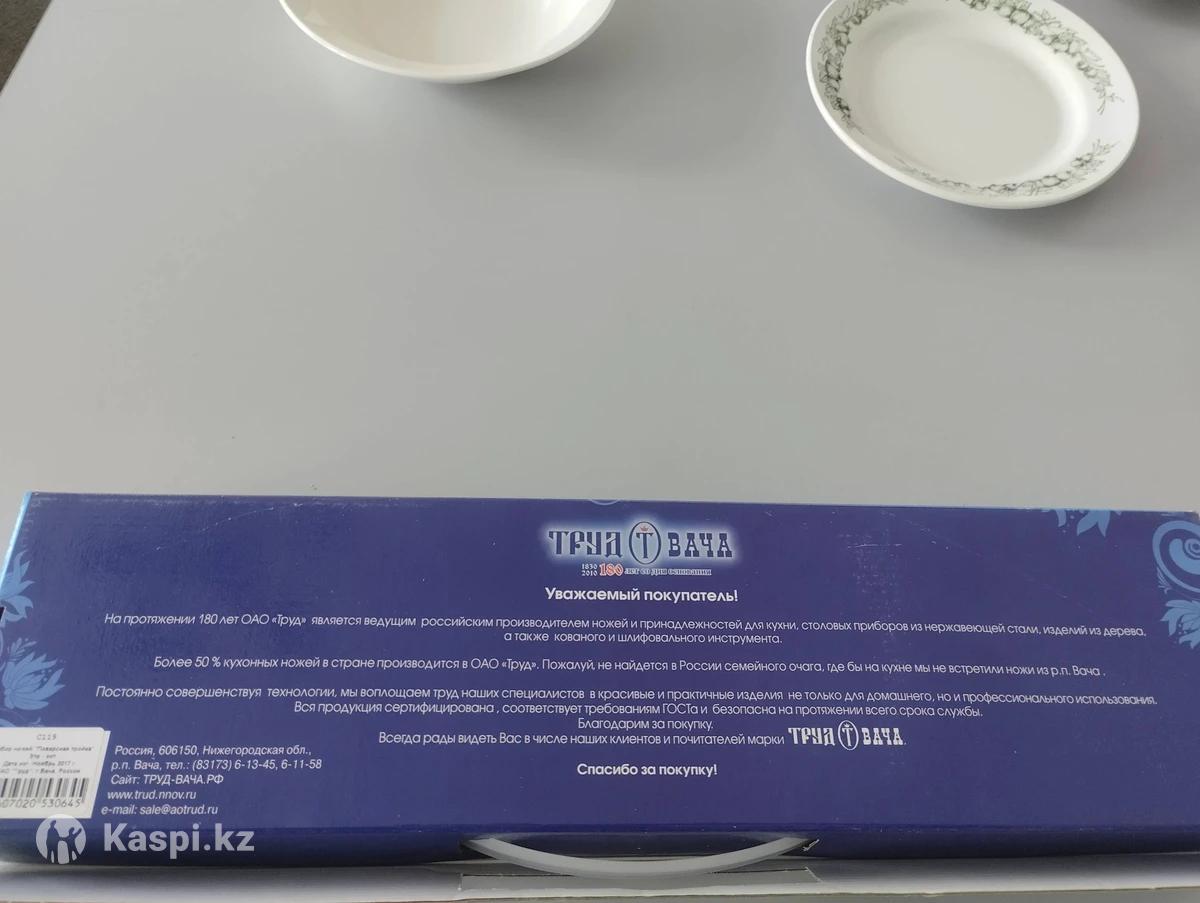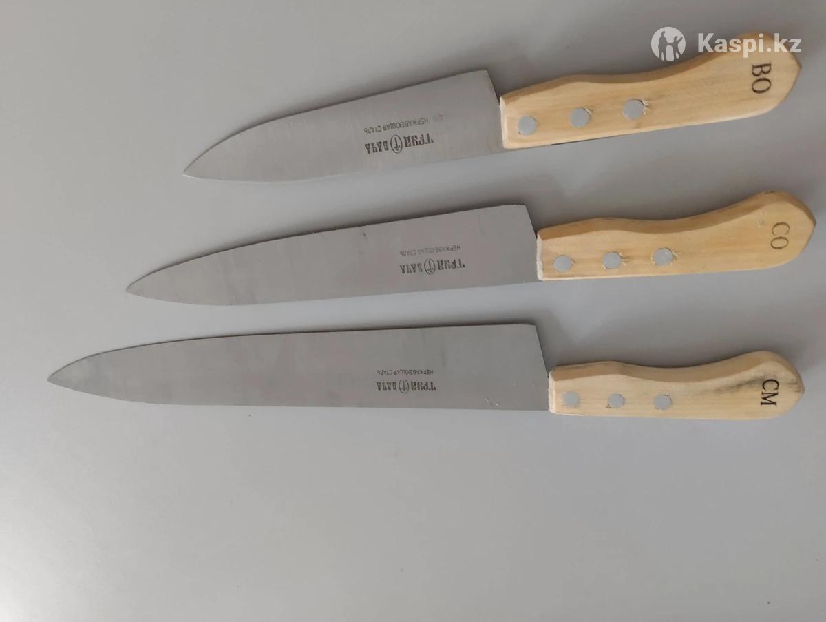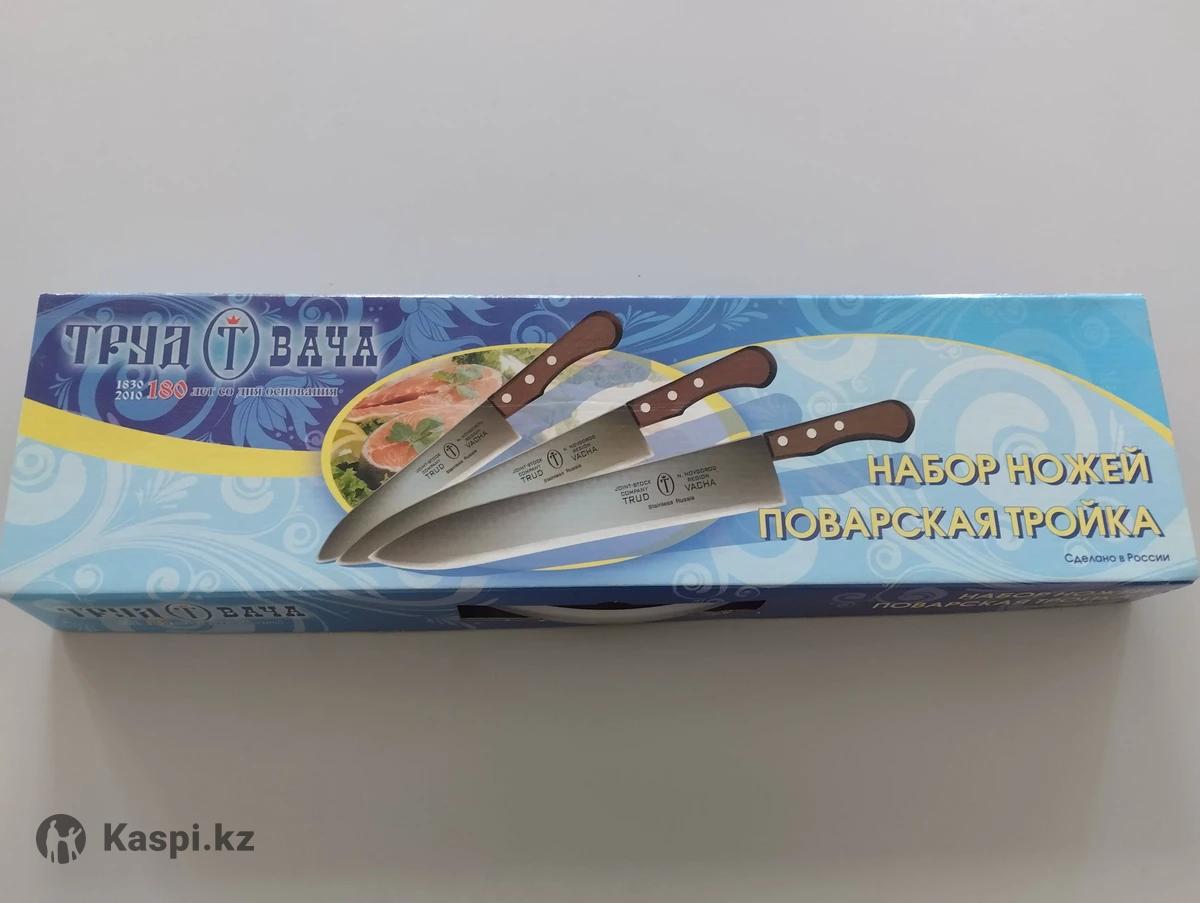 набор ножей поварская тройка, изготовитель Вачинский завод "Труд", количество ножей ,три штуки, длина лезвия32см,ручки13см,толщина лезвия 0,3см; длина лезвия 25 см, длина ручки 13 см,толщина лезвия 0.3см; длина лезвия 18 см,длина ручки 13см, толщина 0.3см, в подарочной упаковкецветчерный