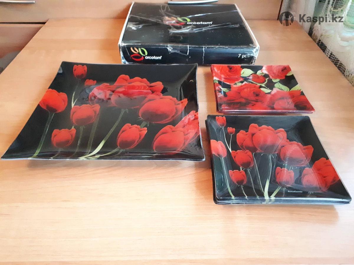 Продам набор Arcofam: Большое блюда 31×31 см. - 1 штука, тарелки 18×18 см - 6 штук. В отличном состоянии, без сколов и трещин. В наборе основные тарелки Тюльпаны 4 штуки и 2 тарелки Розы. Цена: 5000 тенге. Самовывоз. Район Гоголя - Калдаякова. По всем вопросам писать на указанный номер .