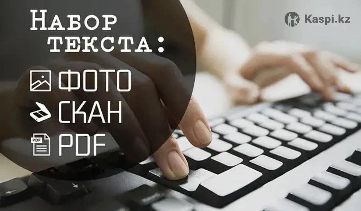 Наберу ваш текст быстро и красиво. Все будет оформлено аккуратно и без ошибок. Наборщик текста на трех языках (казахский, русский и английский языков) . Перепечатка текста с pdf, перепечатать с отсканированных документов, с книжных носителей, скрин, фото, лекции. Шрифт: Times New Roman 14. 1 лист формата А4=500тг С таблицами в формате А4=1000 тг Текст получаете в формате Word. Что нужно для заказа: предоставление разборчивого изображения, материала Долгосрочное сотрудничество. Буду рада работать с Вами.