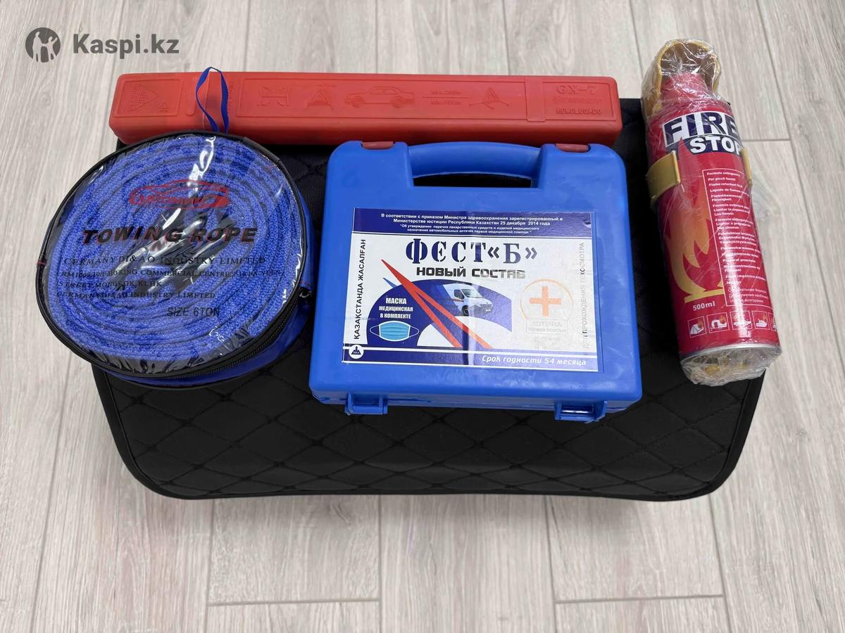 Продам аптечку, аварийный знак, буксировочный трос, огнетушитель, органайзер в багажник. Все новое, не использовалось.