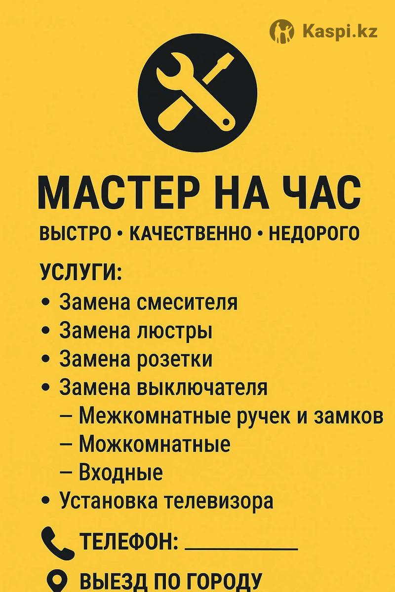 Ищите надежного мастера? Вам не нужно искать разных специалистов — я выполню все мелкие ремонтные и монтажные работы быстро, аккуратно и с гарантией! Услуги: • Установка и подключение люстр, бра, светильников • Замена розеток и выключателей • Ремонт сантехники (смесители, сифоны, бачки) • Сборка и ремонт мебели (шкафы, кровати, столы) • Крепление полок, телевизоров, карнизов • Монтаж плинтусов и другие мелкие работы Поченьу выбирают меня: ✅ Опыт более 5 лет ✅ Быстрый выезд по городу ✅ Свой инструмент ✅ Честные цены, без скрытых доплат ✅ Гарантия на все работы ✅ Работаю как для себя