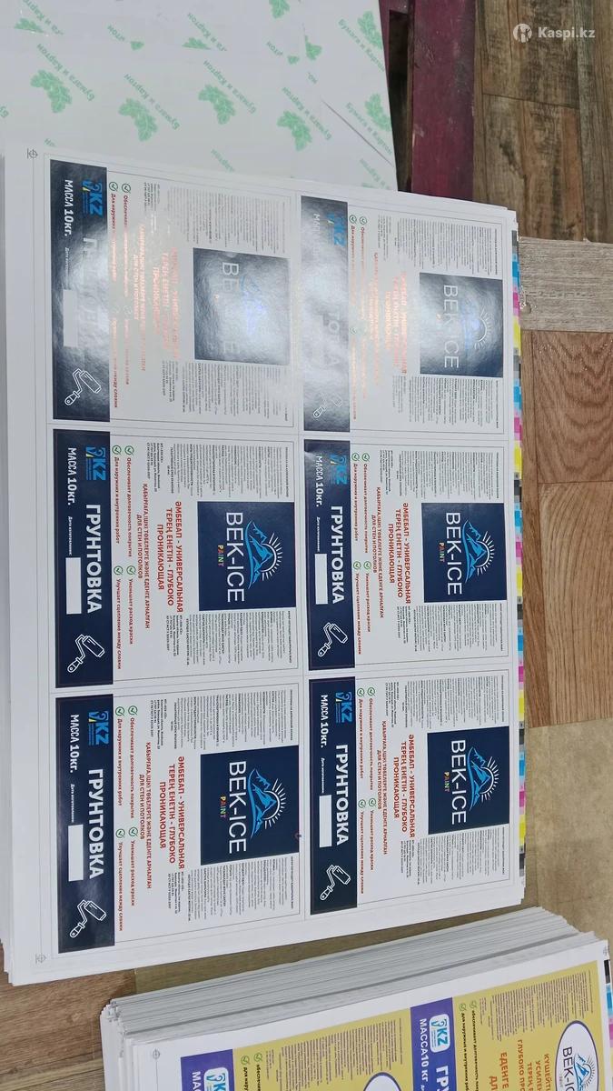Типография Таймпринт сделаем наклейки под ваш продукт. Печатаем большими и маленькими тиражами. Адрес Толе би 302. Наклейки. Самоклейка. Оракал. Офсет.