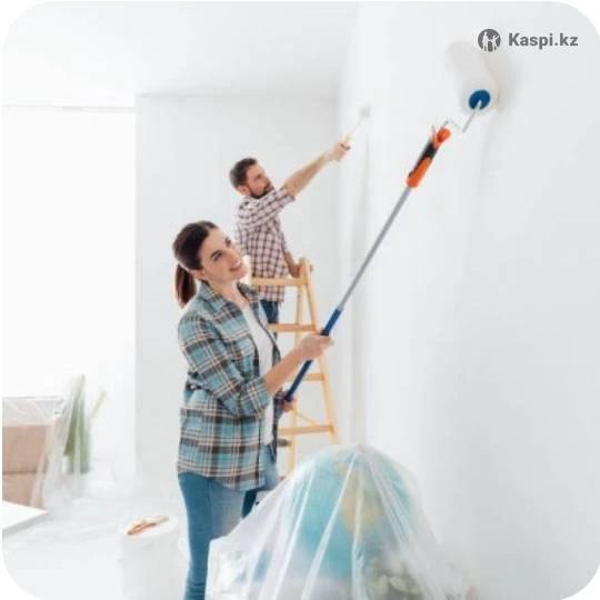 Быстро и качественно клеим обои Рулон шириной 1 метр-9000тг Рулон шириной 50 см-6000тг Галтели 900тг м Покраска Шпатлевка