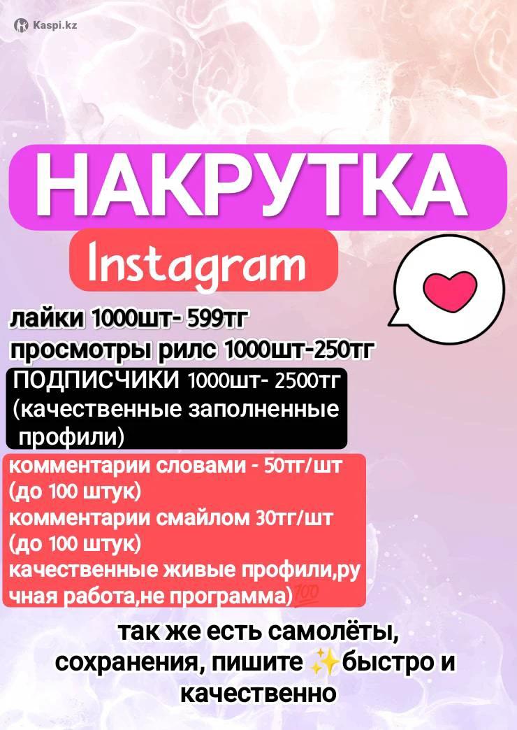 Накрутка инстаграмм , подписчики ,лайки ,сохранения , просмотры рельсов и сторис ! Пишите за подробностями ) У меня самые низкие цены и высокое качество !