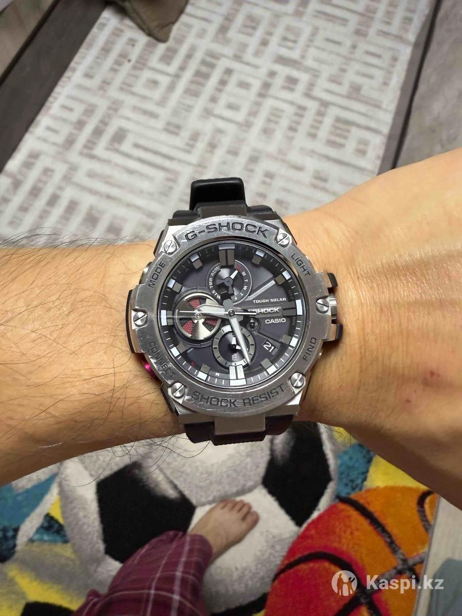 Часы б/у в отличном состоянии. Имеется коробка, гарантия по моему уже прошла. Все же g-shock по качеству хоть внукам передавай. Все работает. От солнца зарядка. Подключается к телефону без проблем. Все функции работают. Покупка была импульсивной. На мое запястье уж слишком крупные. Носил немного.