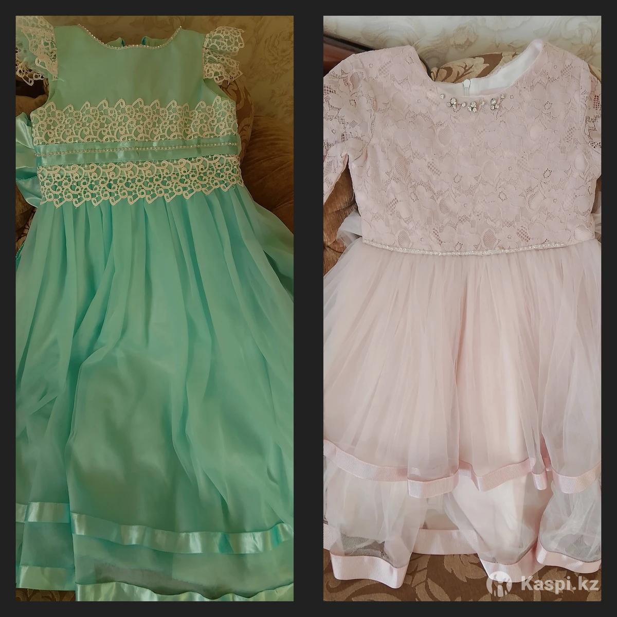 Платье голубое рост 125-130,на худенькие Бежево-розовое лет на 5-7(от комплекции зависит)на рост 110 Каждое платье отдельно по 3000 В одни руки за 5000