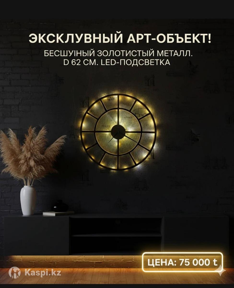 ПРЕМИУМ Настенные Часы 62 см | Золото, LED-Подсветка, Бесшумный Механизм. Представляем Эксклюзивные Настенные Часы — идеальный Арт-объект для роскошного декора! Сочетание внушительного размера, благородного золота и современного функционала. Ключевые Преимущества: Эффектный Дизайн: Роскошный золотистый цвет, стилистика Лофт/Арт-деко. Уникальная Подсветка: Встроенная LED-подсветка создает уютную атмосферу и служит элегантным ночником. Комфорт: Абсолютно БЕСШУМНЫЙ кварцевый механизм (Non-Ticking). Качество Премиум: Надежные материалы и точная сборка.
