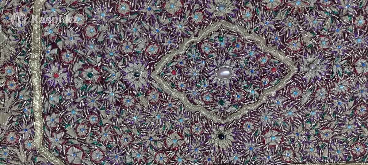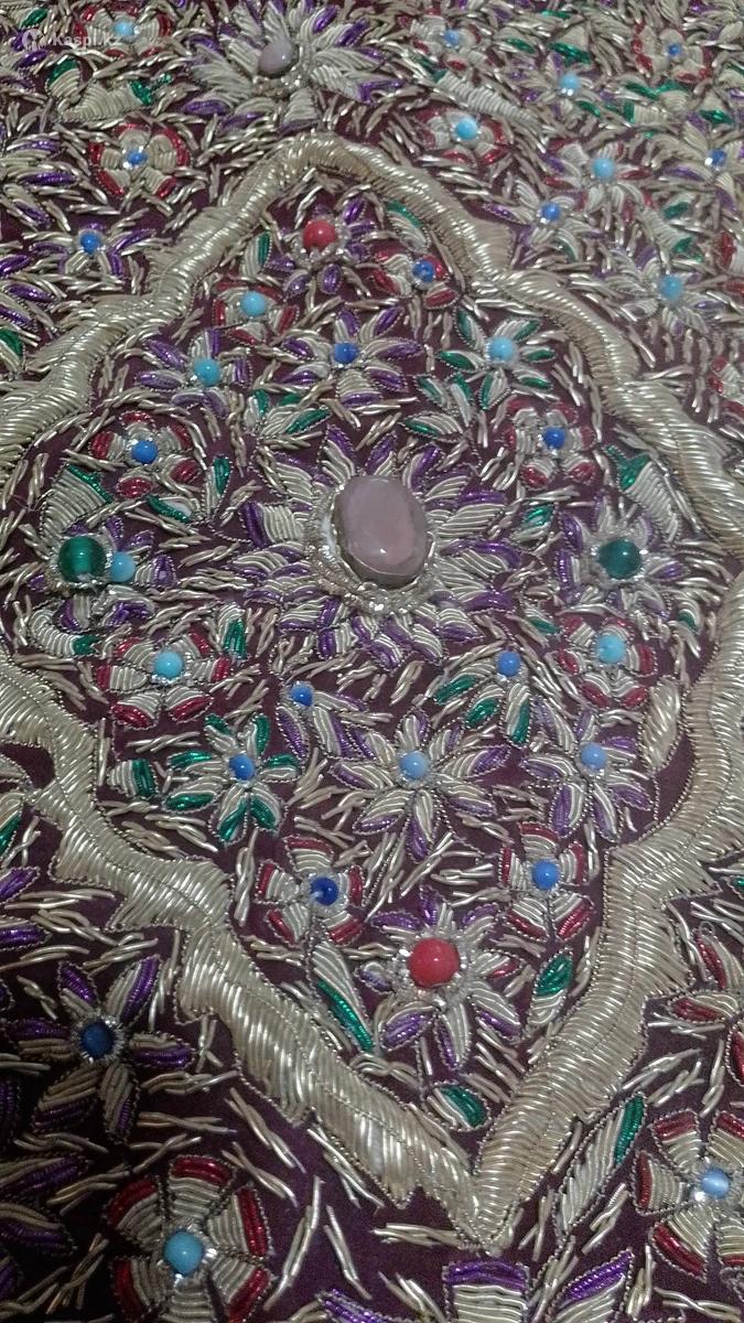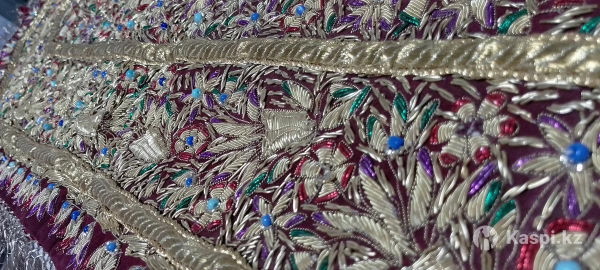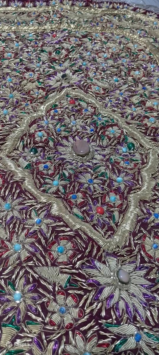 Настенный ковер привезенный из Индии 15 лет назад, ручной работы мастера, вышитый позолоченными нитями и полудрагоценными камнями, в отличном состоянии.