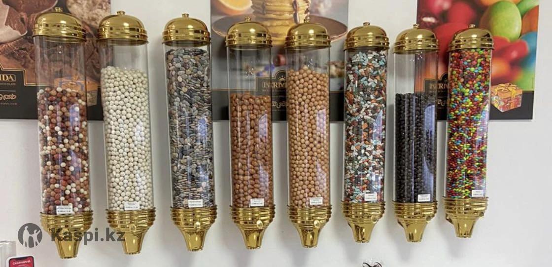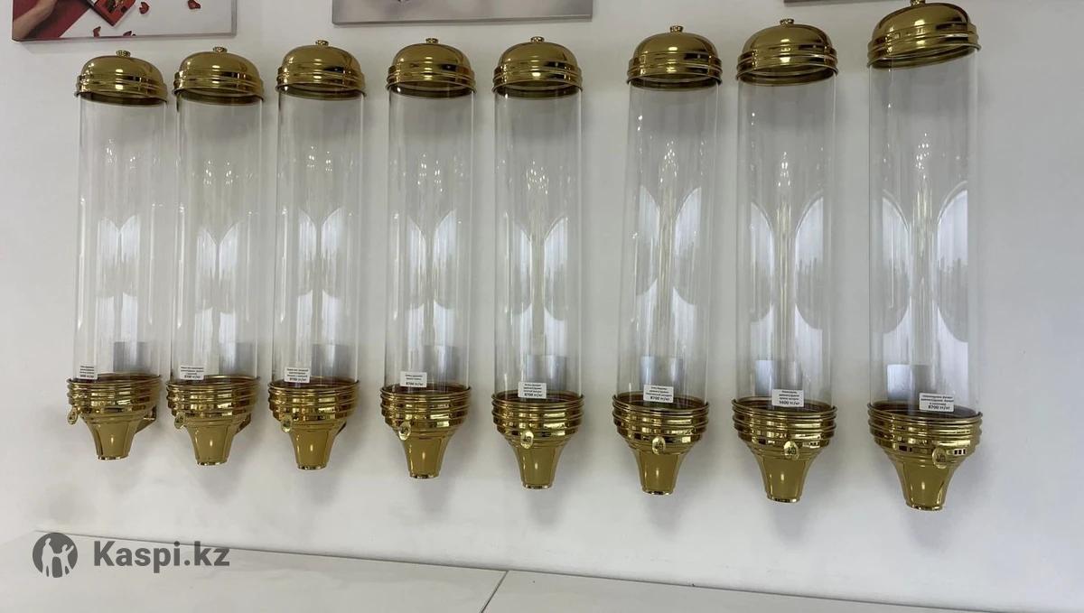 Продам настенные диспенсеры для конфет, кофе или других сыпучих продуктов. В наличии 8 штук. В отличном состоянии. Материал: стекло (не акрил, не пластик) , что позволяет использовать диспенсеры долгое время без потери привлекательного внешнего вида. Высота 80 см, диаметр 15 см. Самовывоз. Цена за 1 шт. Торг Возможен обмен на складские стеллажи