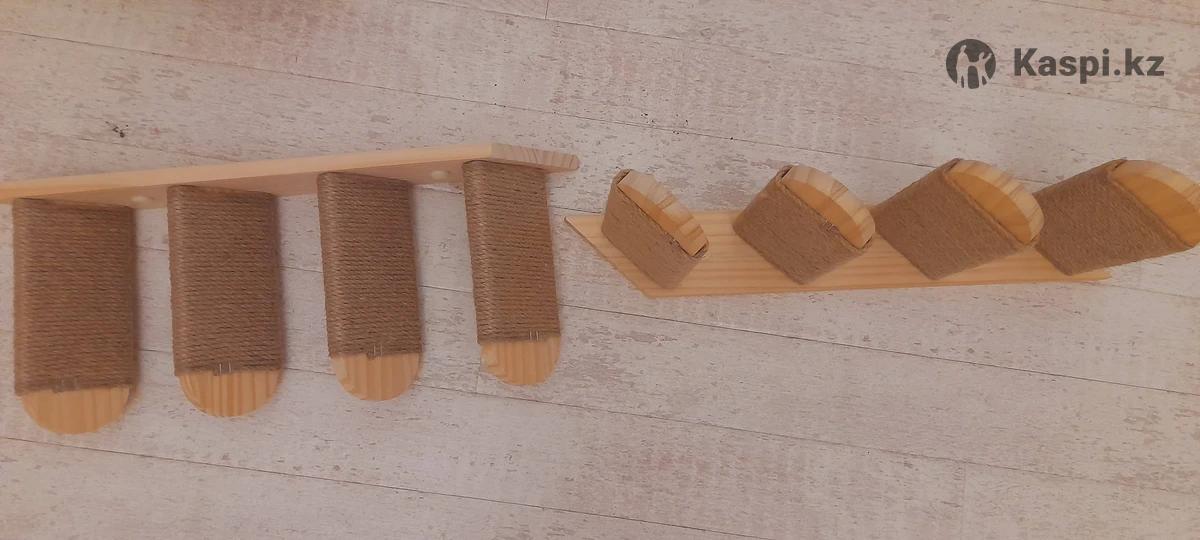 Продается настенный комплект для кошек, материал из дерева и джута. В комплекс входят: ступеньки 2 шт, гамак, когтеточки 2 шт.