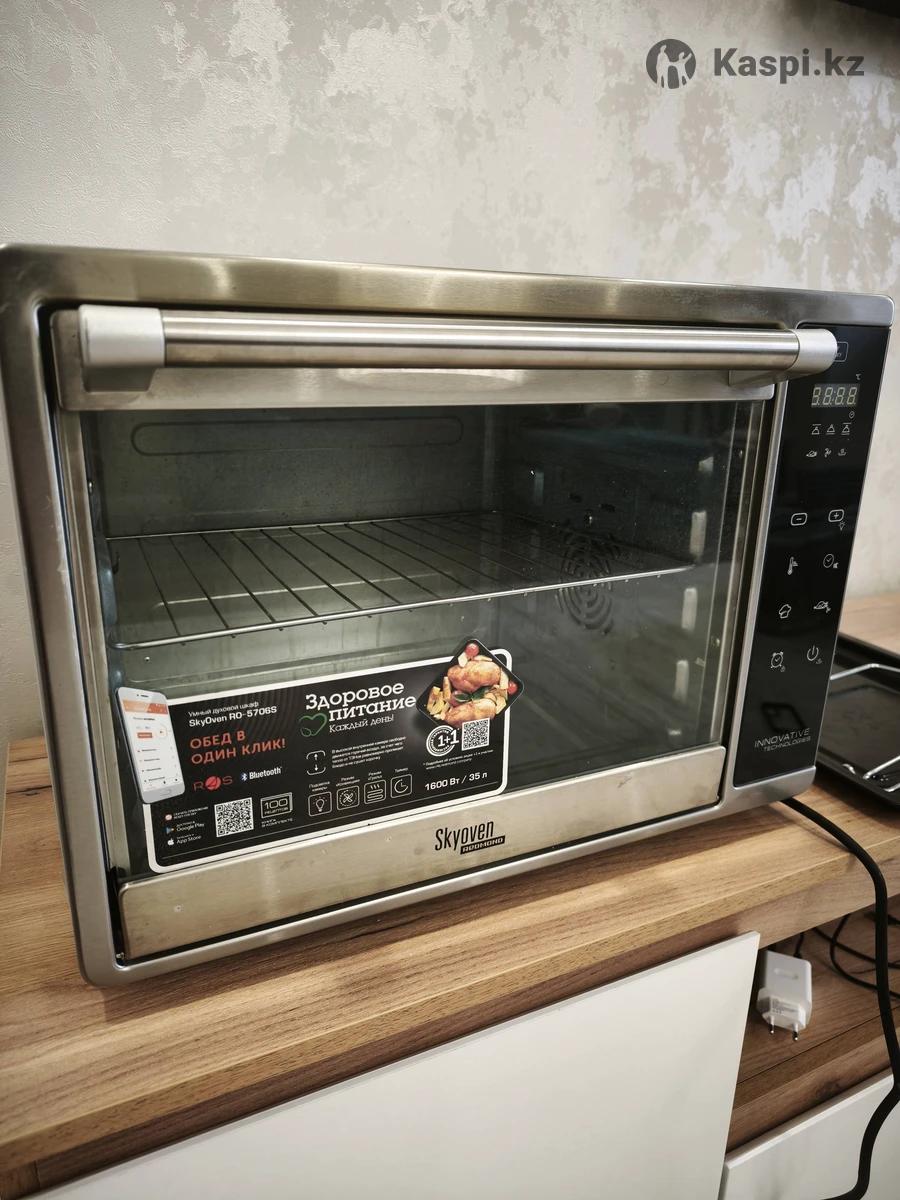 Описание Это универсальная мини-печь с технологией управления Ready for Sky Redmond. Возможности мини-печи позволяют готовить не только выпечку: прибор также можно использовать для запекания различных продуктов, приготовления первых и вторых блюд, домашнего хлеба и десертов. Запустить и контролировать приготовление в умной электрической духовке SkyOven можно со смартфона с приложением Ready for Sky Redmond. Из приложения доступны установка одной из 16 автоматических программ, выбор режима приготовления и работающих ТЭНов, изменение параметров приготовления, включение автоподогрева и отсрочки старта. SkyOven RO-5706S оснащена двумя ТЭНами, которые могут работать вместе или независимо друг от друга. Мини-печь также оснащена встроенным вентилятором, при активации которого внутри рабочей камеры происходит постоянное движение потоков горячего воздуха. Разрабатывая SkyOven 5706S, инженеры Redmond снабдили прибор 16 программами, охватывающими практически все технологии температурной обработки, которые можно реализовать в электропечи. С помощью SkyOven можно запекать мясо, птицу, рыбу или овощи, готовить в горшочках, выпекать ржаной хлеб и чиабату, готовить омлеты и чизкейки — для каждого из этих блюд существует автоматическая программа. В комплекте мини-печи, помимо противня, есть вертел и решетка, с помощью которых вы сможете приготовить блюда-гриль, для которых потребуется минимум масла. А жир, вытапливающийся из продуктов в процессе приготовления, стекает на удобный съемный поддон, который легко очистить с помощью обычных моющих средств. Состояние отличное, повреждений и царапин нет. Пользовались редко.