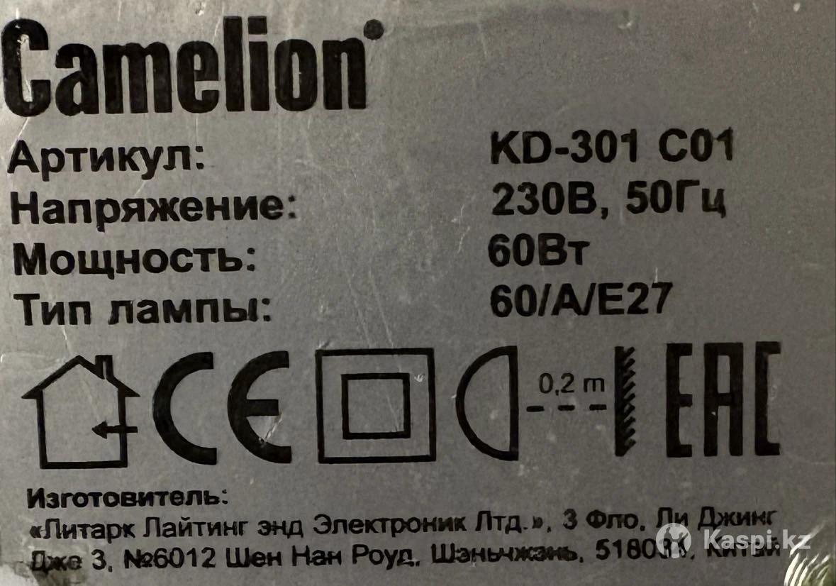 Настольная лампа Camelion с патроном для Е27 (лампы с обычным цоколем).