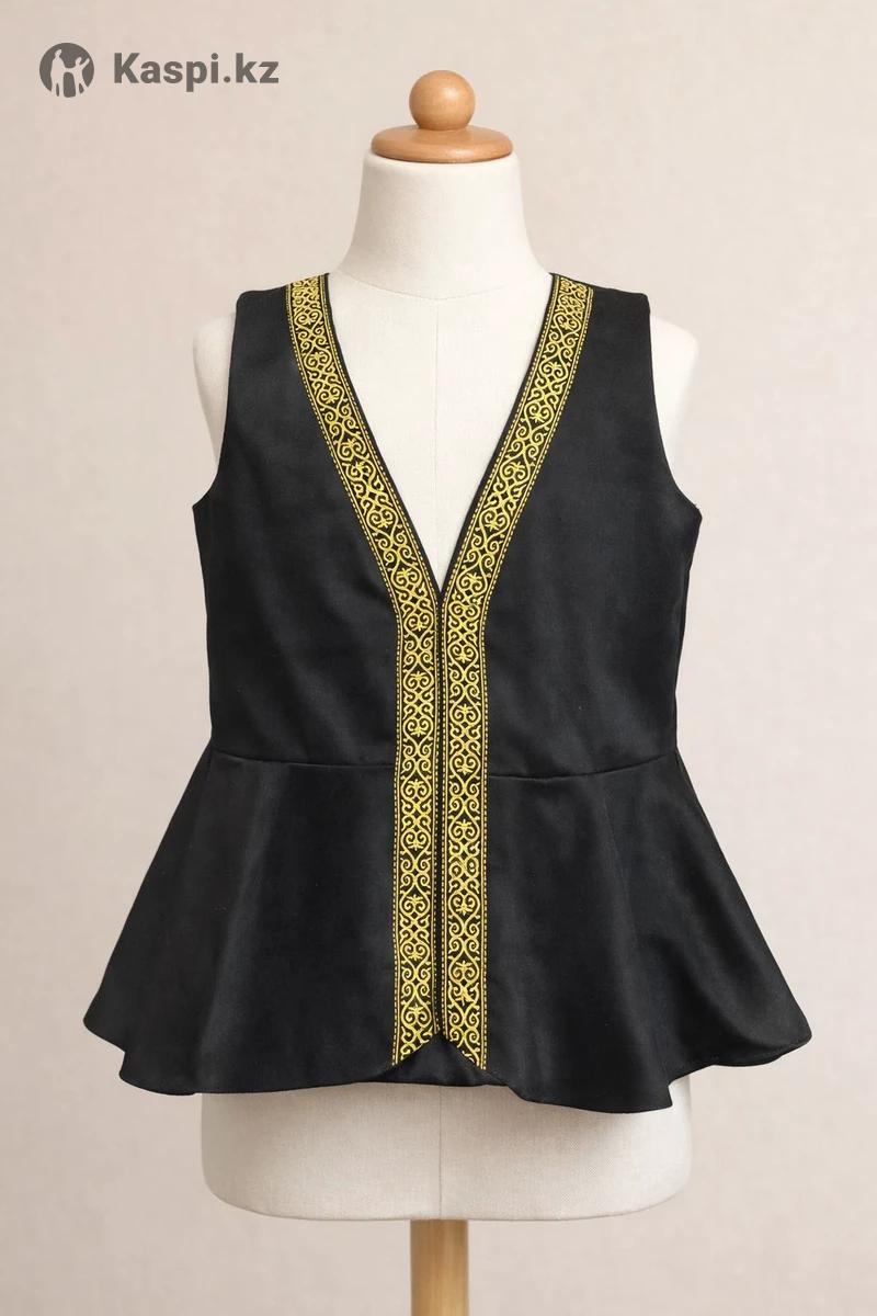 Детская национальная казахская жилетка (камзол). Подходит для Наурыза, утренников, школы, детского сада, фотосессий. Материал: полиэстер Качественная вышивка Удобная, лёгкая, не сковывает движения Подходит для девочек Рост: 92-170 см Цены : от 5500 до 7500 тг Цвета: черный Производство: Казахстан Если сомневаетесь с размером — рекомендуем брать на рост больше.
