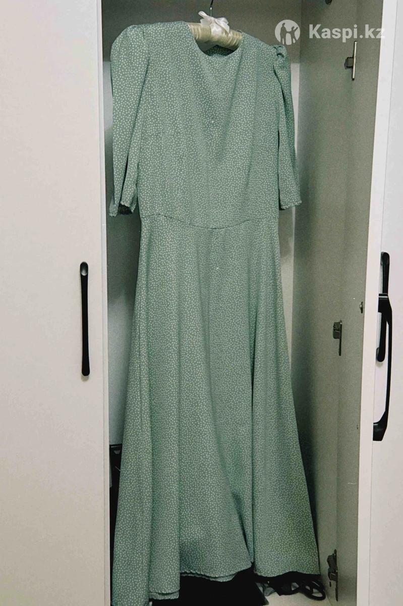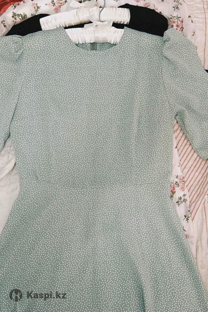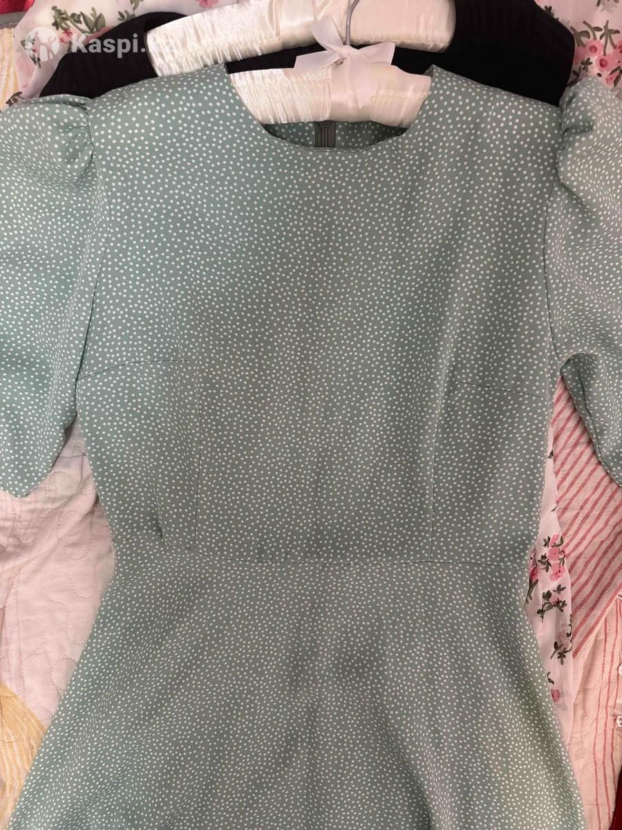 Нежное легкое платье в горошек, качество отличное, носила 2 раза, не просвечивает, материал приятный к телу Размер 40-42 Застегивается на молнии Длина ниже колен