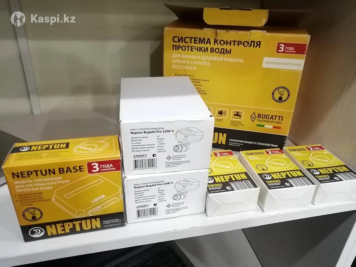 Система контроля протечки воды НЕПТУН, производства России, предназначена для предотвращения потопов и протечек воды в помещениях (горячей и холодной). Данная система является составной частью общей системы безопасности помещения. Система, при малейшей протечке воды (например порвался шланг, труба) сразу заблокирует подачу воды в помещение, подаст непрерывный звуковой сигнал и будет удерживать домашнюю водопроводную систему без воды, до момента устранения причины протечки. Датчики следует установить при этом на кухне, ванной и туалетной комнатах. Четыре датчика вполне возможно подключить к системе контроля.