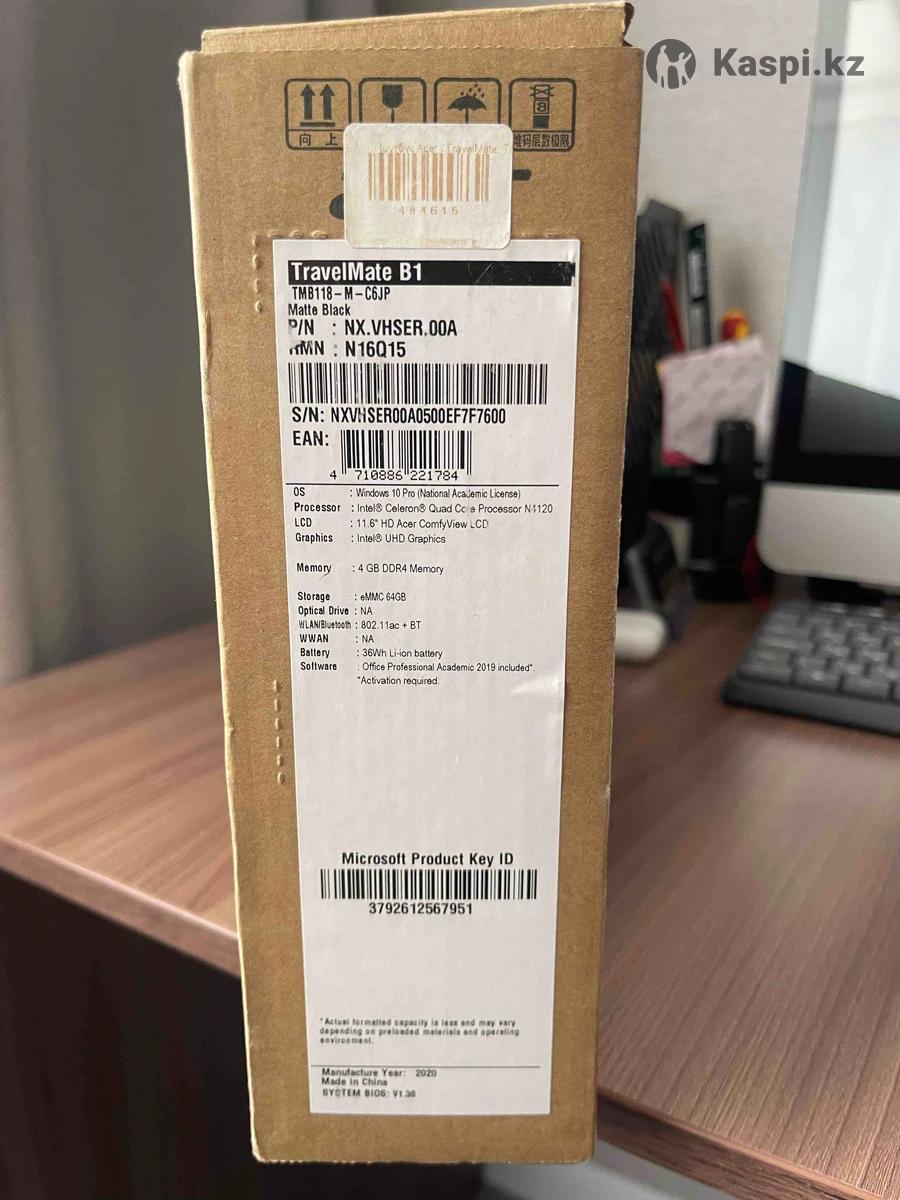 Ноутбук Acer TravelMate B1 (TMB118-M-C6JP) Продаётся ноутбук Acer TravelMate B1 в матовом чёрном цвете. Отличный вариант для учёбы, работы с документами, онлайн-занятий и офиса. 📦 Состояние: б/у, в коробке 📅 Год выпуска: 2020 ⸻ 🔹 Характеристики: •💻 Экран: 11.6” HD Acer ComfyView •⚙ Процессор: Intel Celeron N4120 (4 ядра) •🎮 Графика: Intel UHD Graphics •🧠 ОЗУ: 4 GB DDR4 •💾 Память: 64 GB eMMC •🔋 Батарея: 36Wh Li-ion •📶 Wi-Fi 802.11ac + Bluetooth •🖥 Windows 10 Pro •📄 Office 2019 Professional Academic ⸻ 🔹 Подойдёт для: ✔ Школьников и студентов ✔ Онлайн-уроков ✔ Работы в Word / Excel ✔ Просмотра фильмов ✔ Лёгкой офисной работы Компактный, лёгкий, удобный для переноски.