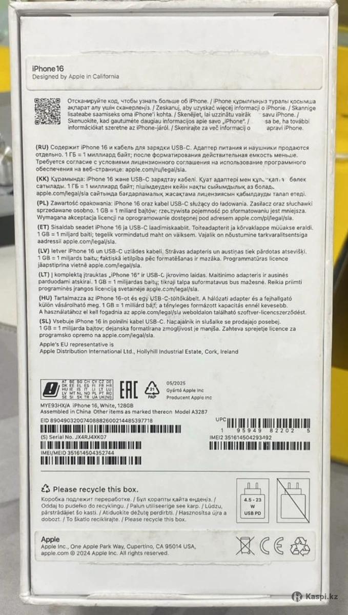 Смартфон Apple iPhone 16 128gb white Официальный ЕАС Абсолютно новый Приобретался в ноябре В использовании 5-7 дней был В защитном стекле и чехле Полный заводской комплект Циклов - 8, аккумулятор 100% Не путать с неофициальными айфонами для других регионов Этот сертифицированный для ЕАС Юго-восток Окончательно цена