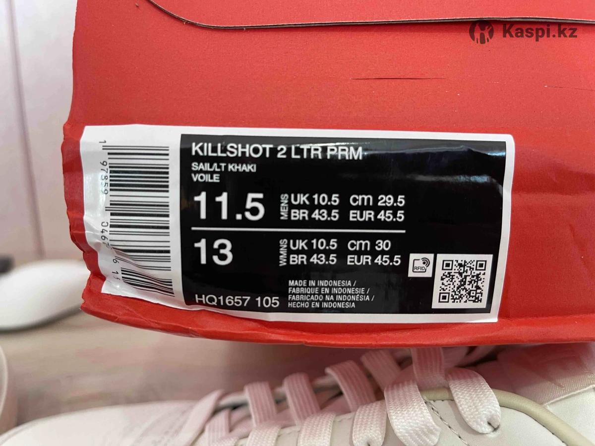 Срочно дешево отдаю.Оригинал 100%. Nike killshot 2 вверх полностью кожа. Универсальные в любую погоду. Заказаны с США оригинал. Обошлись в 46000 тыс со скидкой. Отдам по себестоимости. Доставка по РК с меня. Размер US11.5 / UK 10.5 / cm 29.5 / EUR 45.5