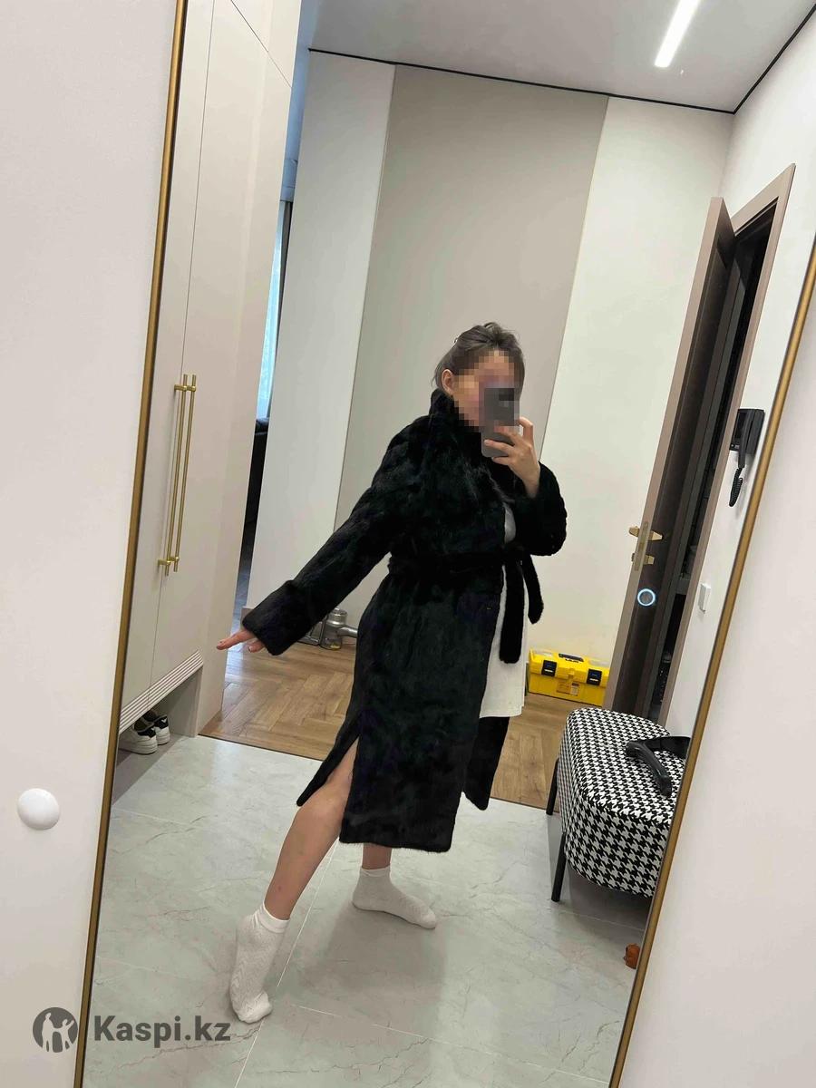 В отличном состоянии черный бриллиант, английский воротник, при росте 160 ниже колен, с норковым поясом. Есть еще другие верхние вещи