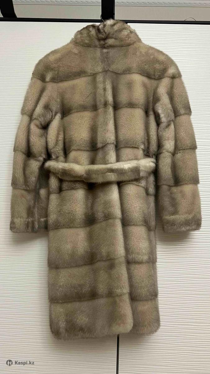 Норковая шуба Aris Kallias с ремнем, длина до колен.