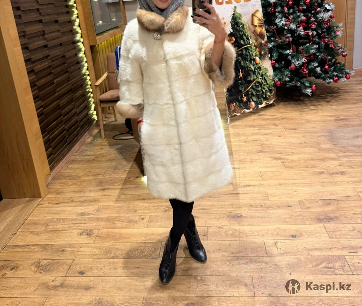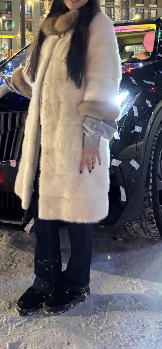 Белая Шуба норковая с соболем воротник и рукав 3/4 куплена в Дубаи размер 42 до колен