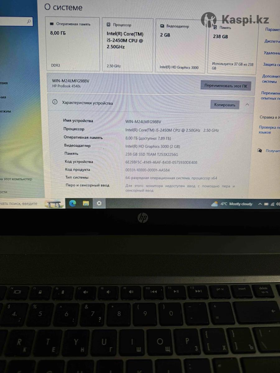 Продам Ноутбук HP ProBook 4540s В отличном состояние После профилактике и обслуживание Новый аккумулятор (батарейка) 1.5час Новый ssd 240gb Шустрый летает не лагает Процессор Intel Core i5 2450M (2.5 - 3.1 ГГц, 2 ядра,35 Вт) Кэш L2 процессора 256 Кб x 2 Кэш L3 процессора 3 Мб Количество ядер 2 Оперативная память (ОЗУ) 8Gb Максимально 16gb Видеокарта Тип видео Дискретное Radeon HD 7650M (128 бит) характеристики MGPU Кол-во шейдерных процессоров 480 Частота GPU 500 МГц Разрядность шины видеопамяти128бит Видеопамять ноутбука 1 Гб