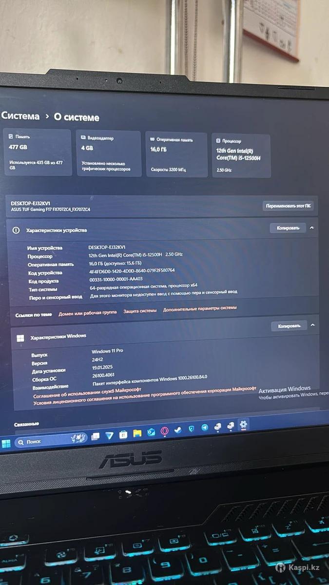 ASUS TUF Gaming F17 📏 17.3” экран, отличное состояние ⚙️ Мощный игровой ноутбук, тянет современные игры 🔋 Батарея держит, не перегревается 💰 Цена: 400 000 тг, срочно 📍 Астана