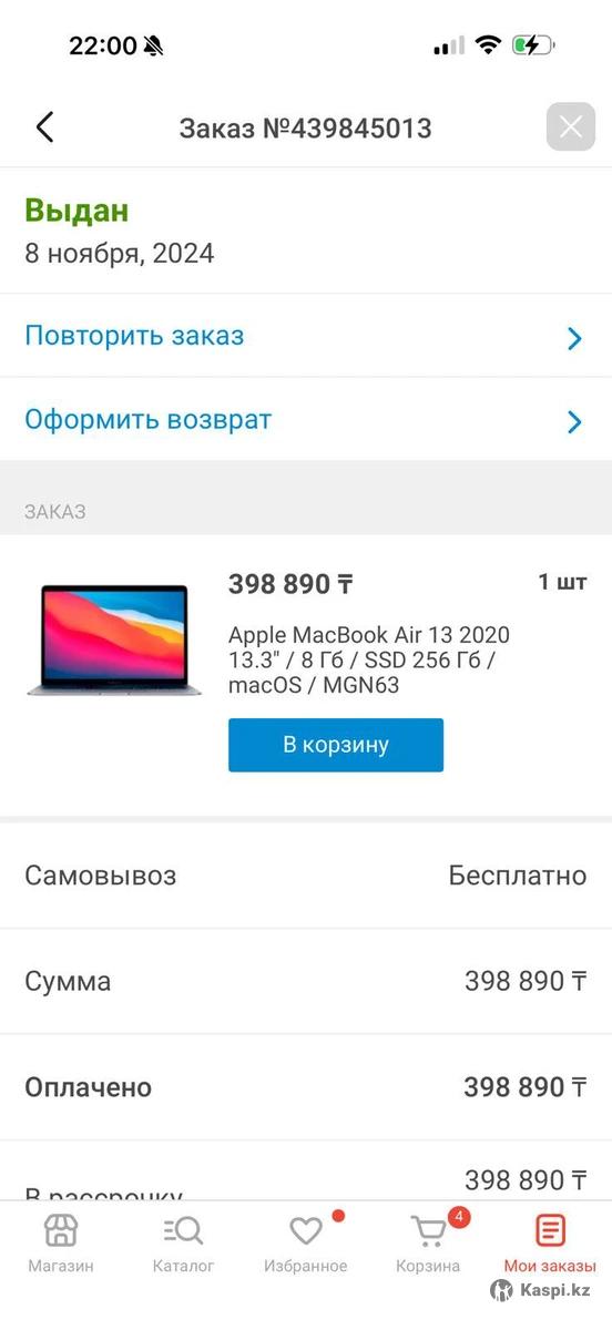 Продам MacBook Air 13 2020 13.3»/ 8гб:/ssd 256 гб Покупала в мечте Состояние аккумулятор 95% Работает в отличном состоянии