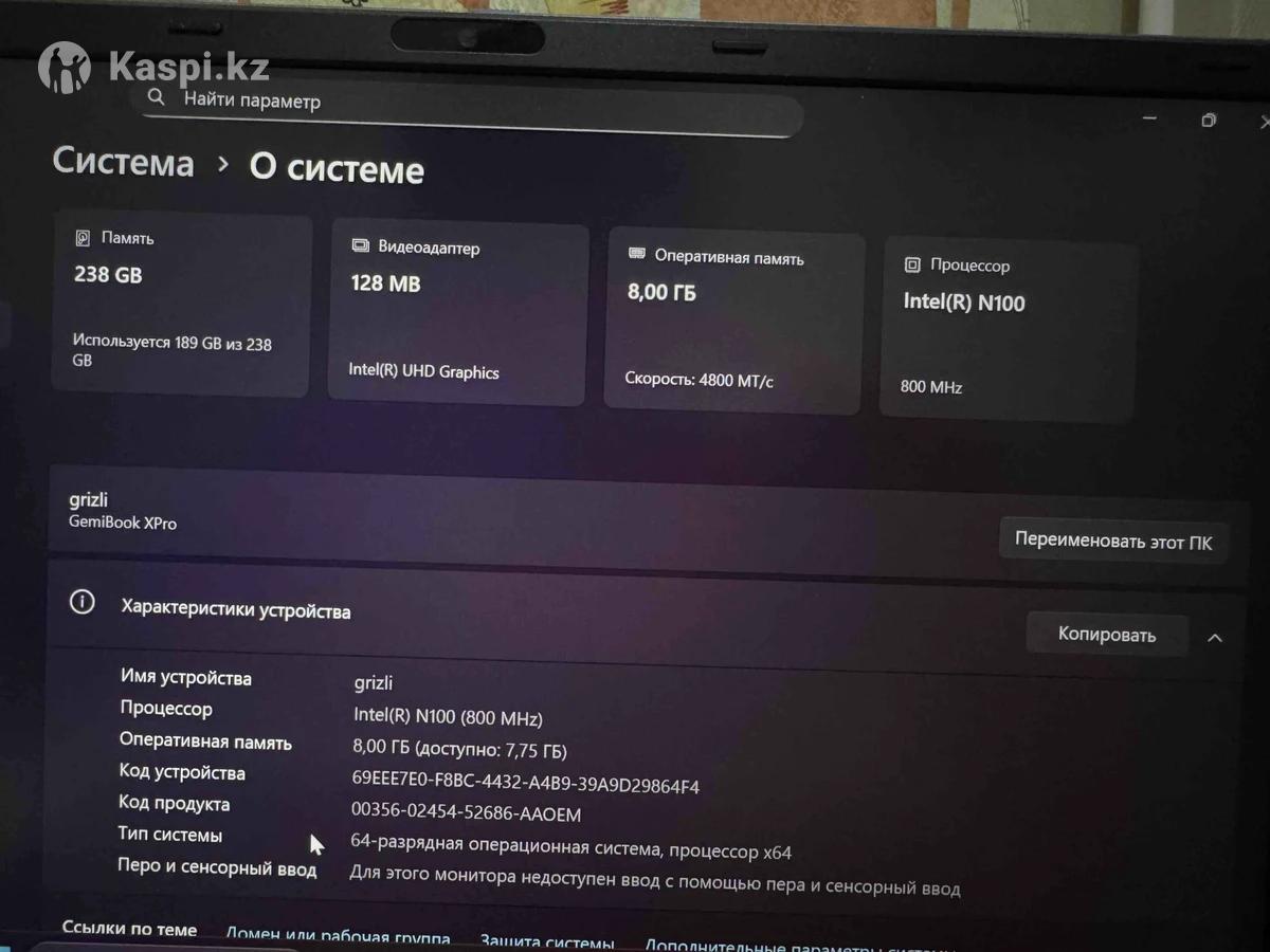 Продаётся ноутбук Chuwi в отличном состоянии Современный и быстрый ноутбук, отлично подойдёт для работы, учёбы, интернета, фильмов и повседневных задач. Характеристики: • Процессор: Intel N100 • Оперативная память: 8 ГБ (4800 MT/s) • Накопитель: 238 ГБ SSD • Видеопамять: 128 МБ • Операционная система: Windows 11 (64-разрядная) • Архитектура процессора: x64 Ноутбук работает быстро и стабильно, система чистая, всё готово к работе. Компактный, лёгкий и удобный — можно брать с собои на работу, учёбу или в поездки. 📌 Подойдёт для: — работы с документами — учёбы — просмотра фильмов — интернета и соцсетей Торг уместен Ноутбук сильно не пользовался, только лишь учеба