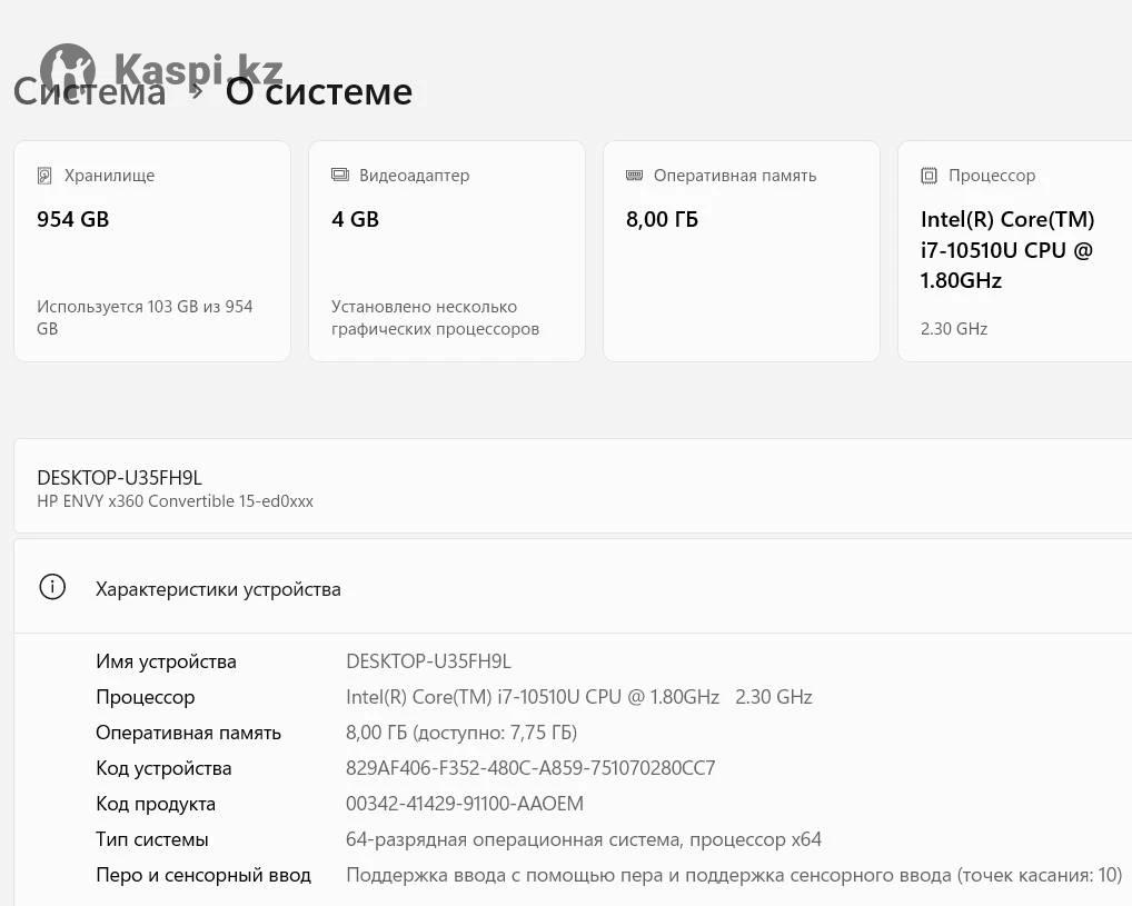 Продам ноутбук HP Envy x360 convertible, диагональ 15.6 дюймов, состояние идеальное, сенсорный экран, ОС Windows 11. Cтильный и производительный ноутбук-трансформер «2-в-1», можно использовать как планшет. Покупал в Алматы 3 года назад