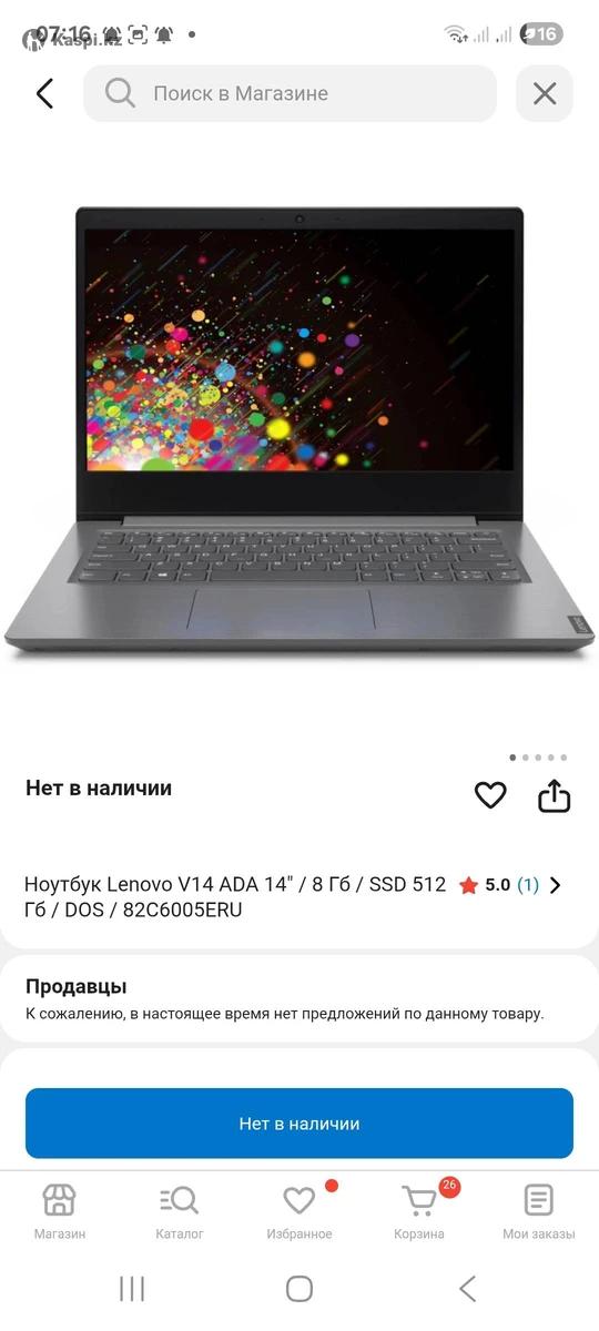 Продается ноутбук Марка: Lenovo v14 ADA Память: 512 Оперативная п : 8 гб Подходит для работы и как для игр : GtaV ,Cc2, COFD 2 3 4 на средних настройках По цене 100.000 торг уместен